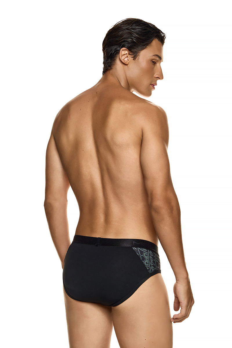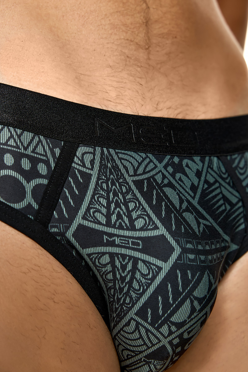 Ανδρικό Mint black print slip MED Maori , κατασκευασμένο από υψηλής ποιότητας ύφασμα φιλικό προς το δέρμα. Σλίπ σχεδιασμένο να προφέρει άνεση και εξαιρετική εφαρμογή, με φαρδύ εξωτερικό, γυαλιστερό λάστιχο, διακοσμημένο με μαύρο logo MED.