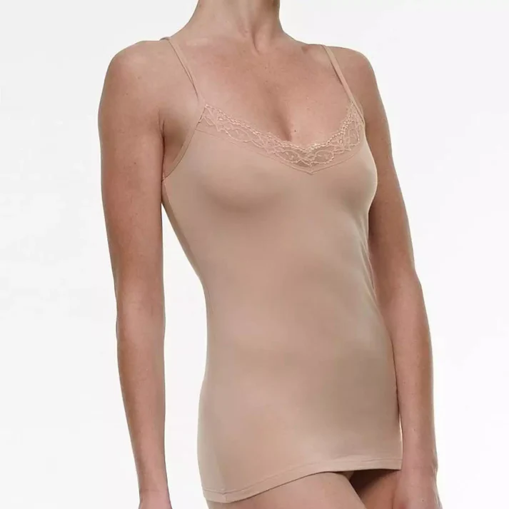 Γυναικείο Φανελάκι Cotonella - Ψιλή Τιράντα - Δαντέλα - Οικολογικό βαμβάκι - Μπεζ