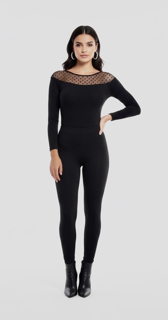 Γυναικείο Κορμάκι MED - Μαύρο - Με Πουά Διαφάνια - Brazil