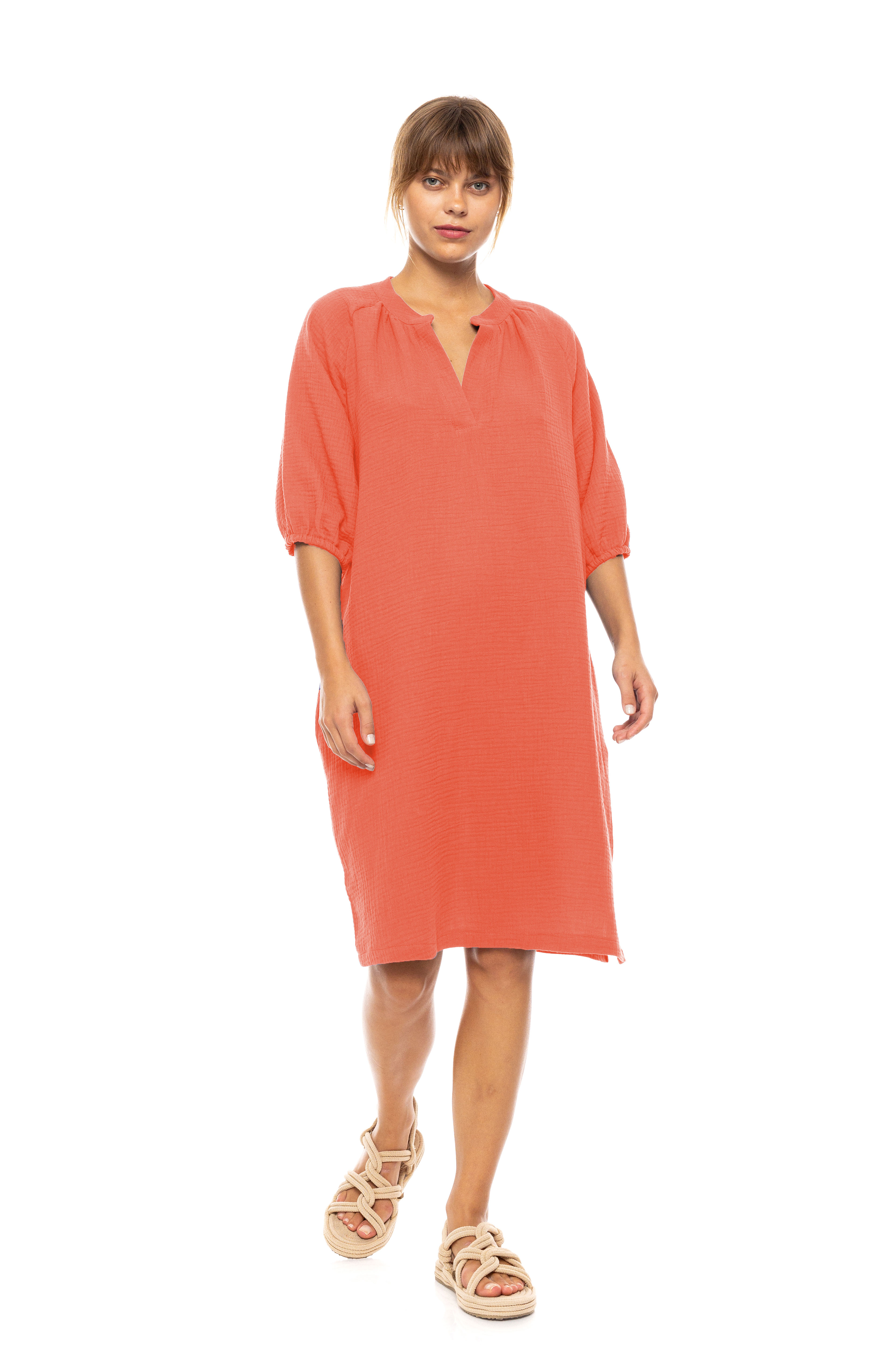 Γυναικείο Beachdress Pink Label σε άνετη γραμμή με μανίκι 3/4 από απαλό και δροσερό ύφασμα υψηλής ποιότητας. Φόρεμα παραλίας Coral με άνοιγμα V στο στήθος.