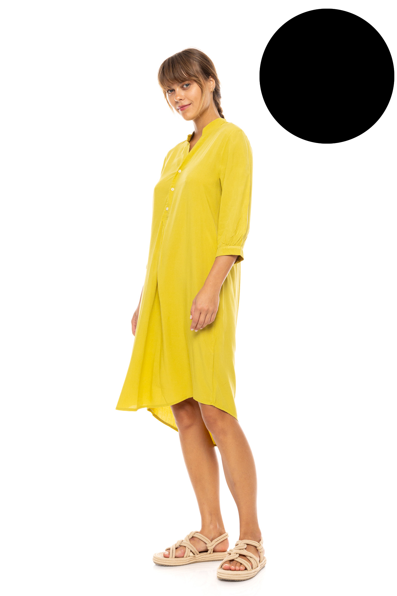 Γυναικείο Beachdress Pink Label σε άνετη γραμμή με μανίκι 3/4 από απαλό και δροσερό ύφασμα υψηλής ποιότητας. Φόρεμα παραλίας μαύρο, άνοιγμα V στο στήθος και κουμπιά.