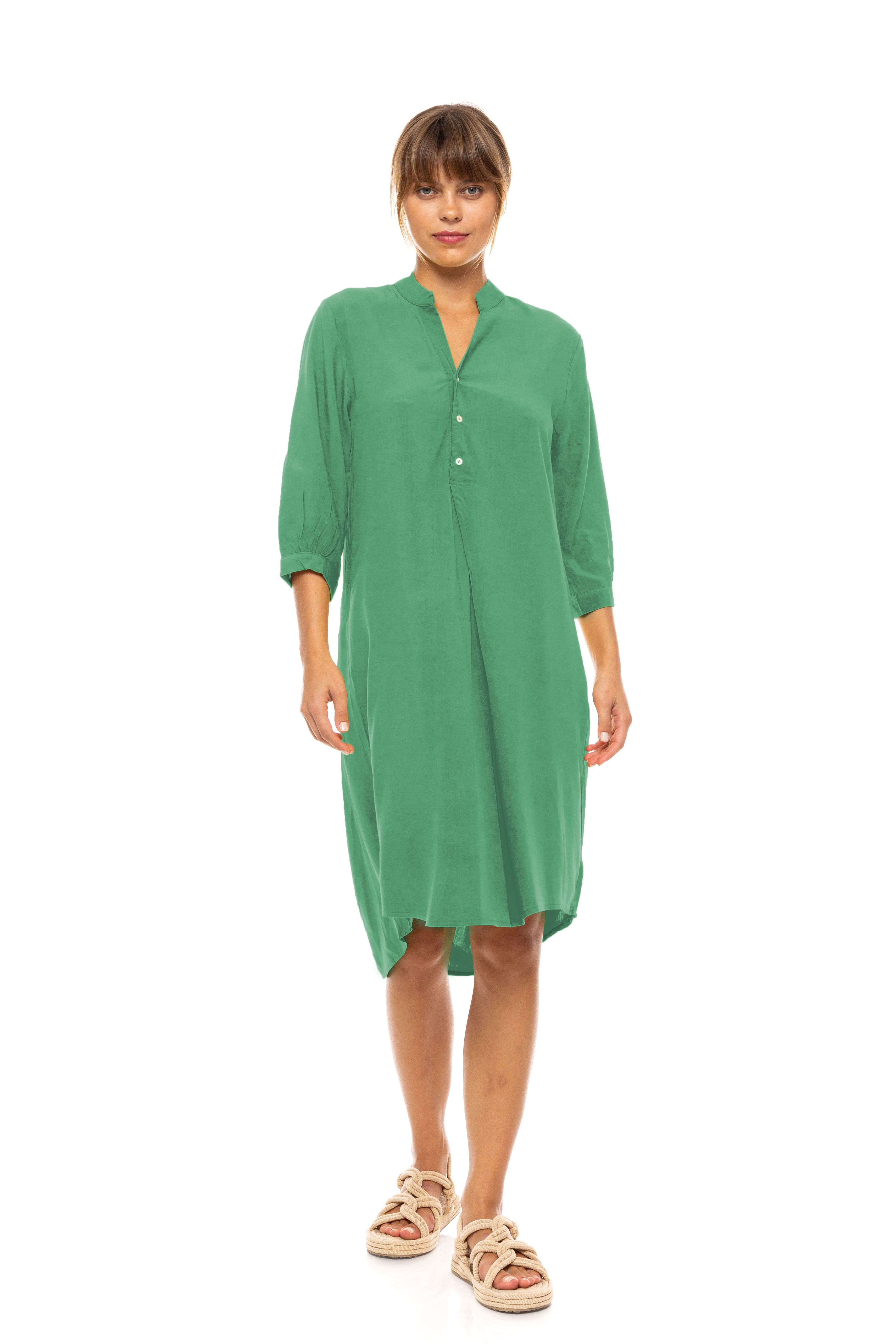 Γυναικείο Beachdress Pink Label σε άνετη γραμμή με μανίκι 3/4 από απαλό και δροσερό ύφασμα υψηλής ποιότητας. Φόρεμα παραλίας Sea Green, άνοιγμα V στο στήθος και κουμπιά.