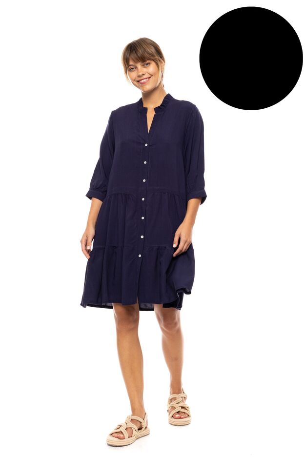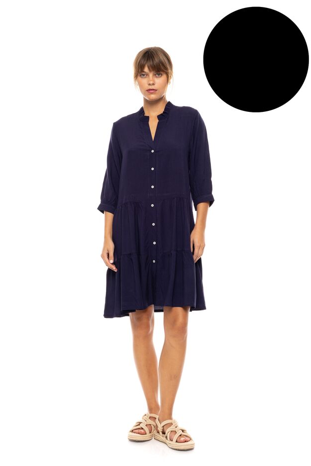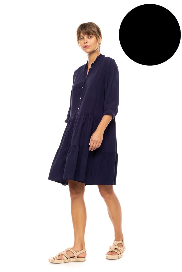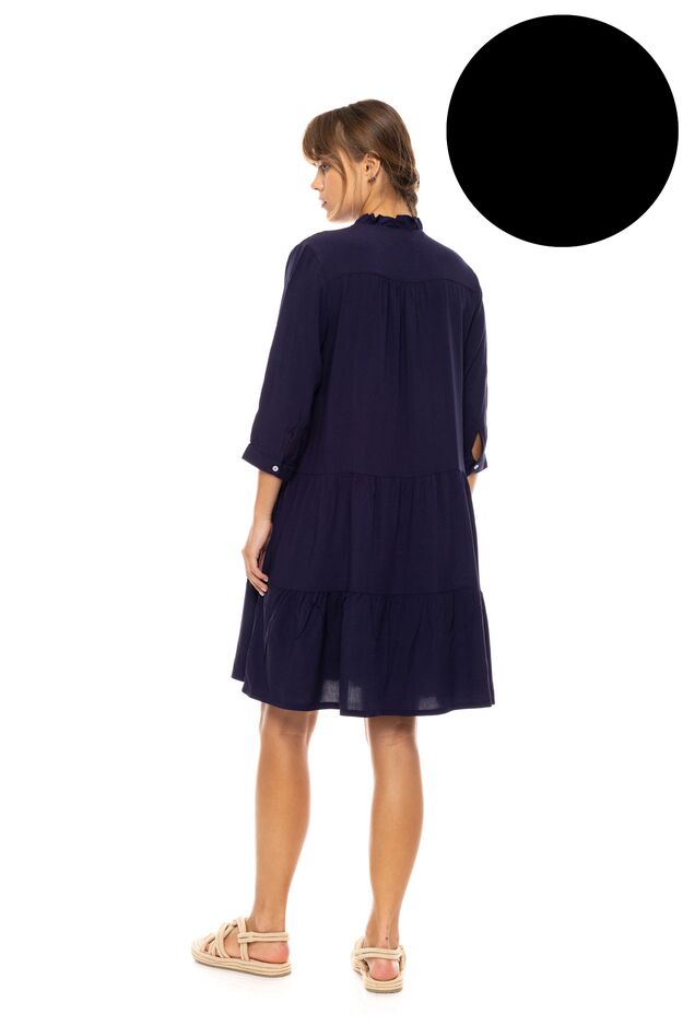 Γυναικείο Beachdress Pink Label ΜΑΥΡΟ κοντό σεμιζιέ σε άνετη γραμμή με 3/4 μανίκια και βολάν. Φόρεμα παραλίας με άνοιγμα V στο στήθος, 100% Viscose