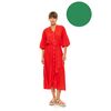 Γυναικείο Beachdress Pink Label σε άνετη γραμμή. Σεμιζιέ φόρεμα παραλίας Sea Green με μάο γιακά και άνοιγμα V στο στήθος, 100 % Viscose