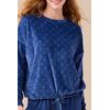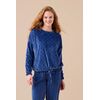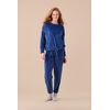 Γυναικεία χειμωνιάτικη πυτζάμα Noidinotte βελούδινη μπλέ καρό μπλούζα με καρδιές και κορδόνι στο τελείωμα , μπλέ μονόχρωμο παντελόνι με λάστιχο . Νεανικό Homewear Set πολύ ζεστό και απαλό.
