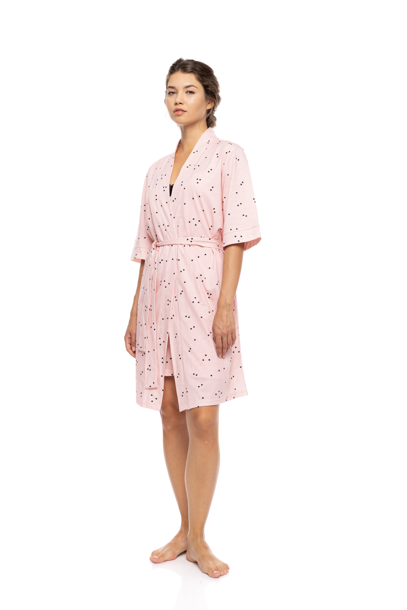 Γυναικεία Ρόμπα Pink Label - LITTLE HEART PINK - Σταυρωτή - 3/4 Μανίκι - Cotton