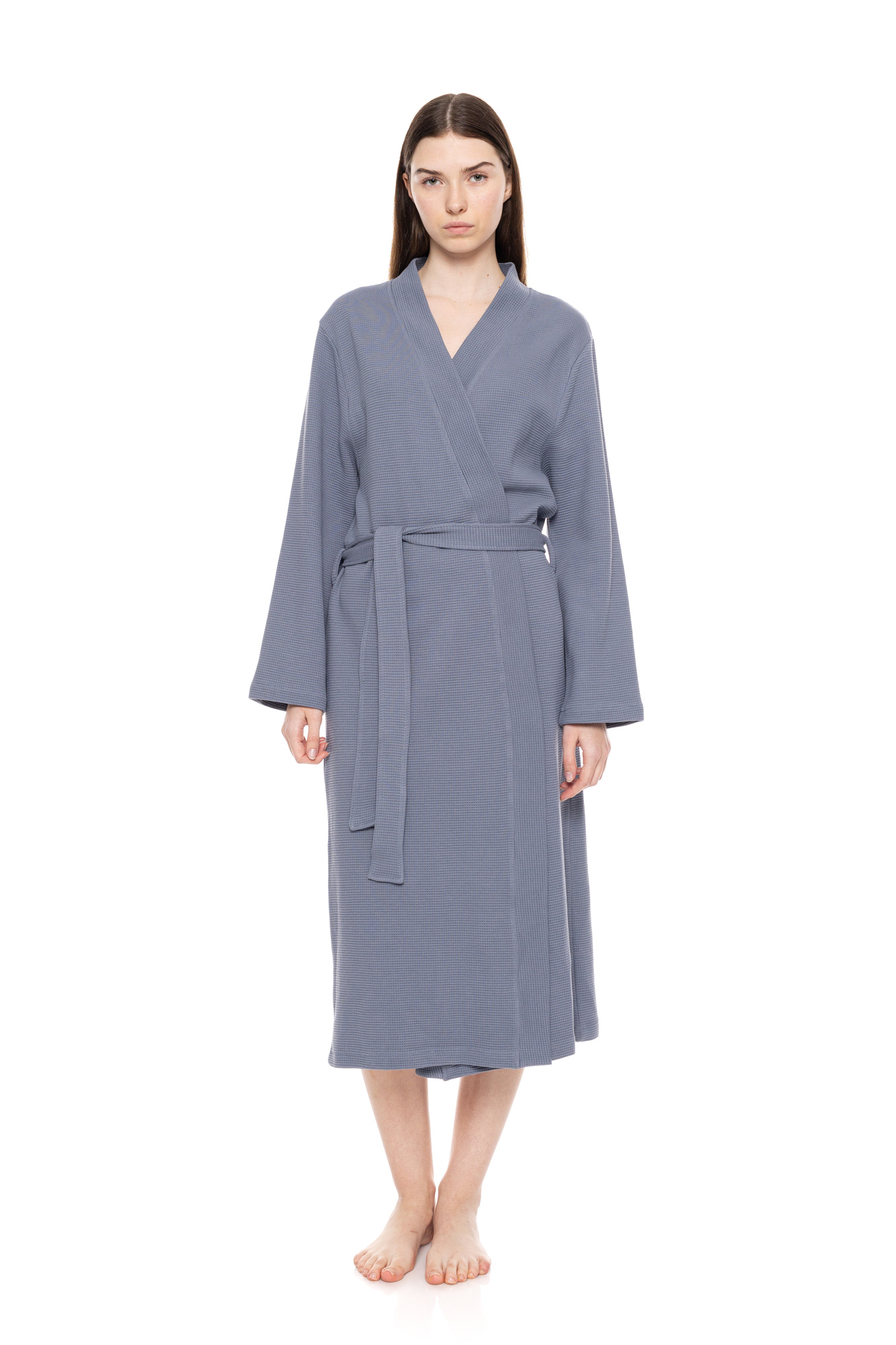 Γυναικεία Ρόμπα με μακρύ μανίκι Pink Label. Νεανική Ρόμπα midi cosmos blue σε ίσια γραμμή κατασκευασμένη από βαμβακερό ύφασμα που επιτρέπει στο δέρμα να αναπνέει, ζώνη για δέσιμο στην μέση και τσέπες.