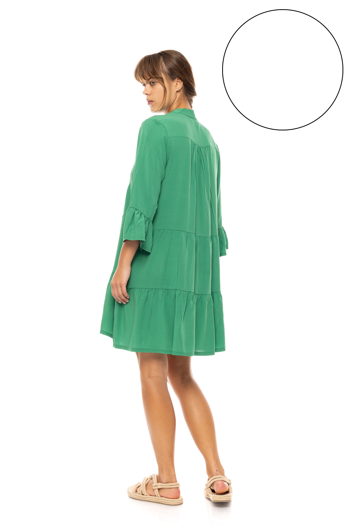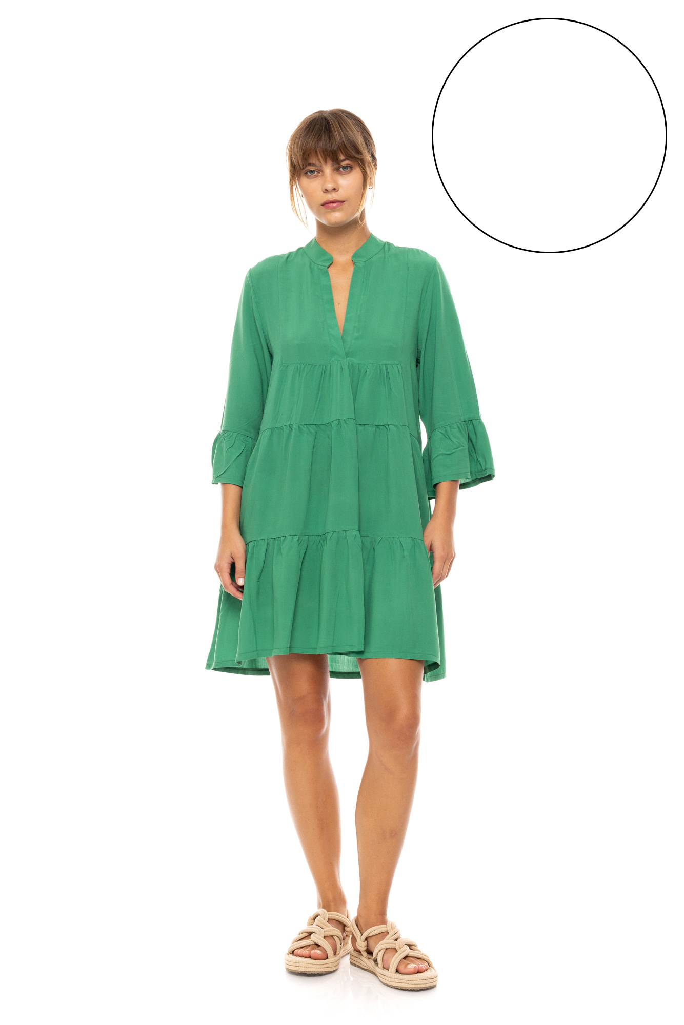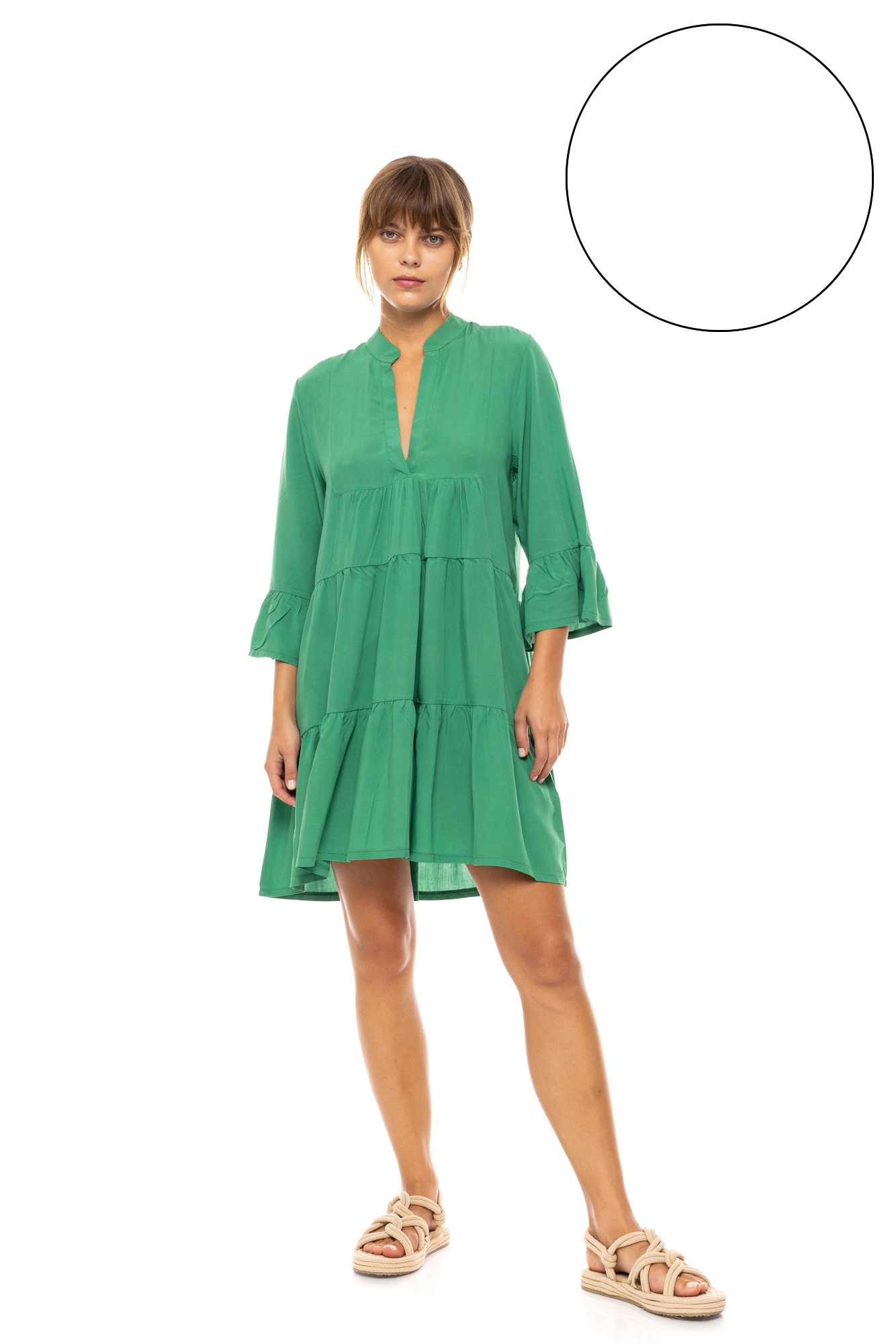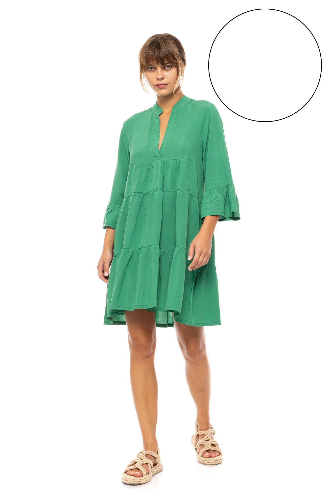 Γυναικείο Beachdress Pink Label λευκό κοντό σε άνετη γραμμή με μανίκια 3/4 και βολάν. Φόρεμα παραλίας με άνοιγμα V στο στήθος, 100% Viscose