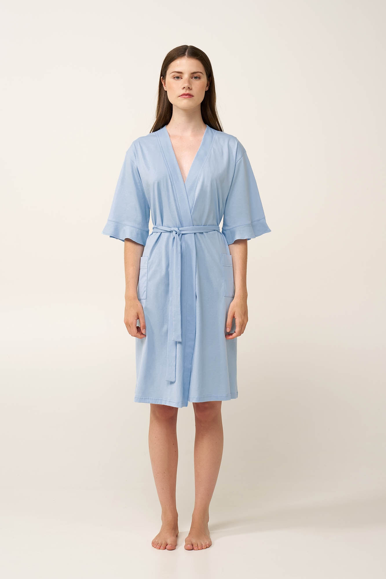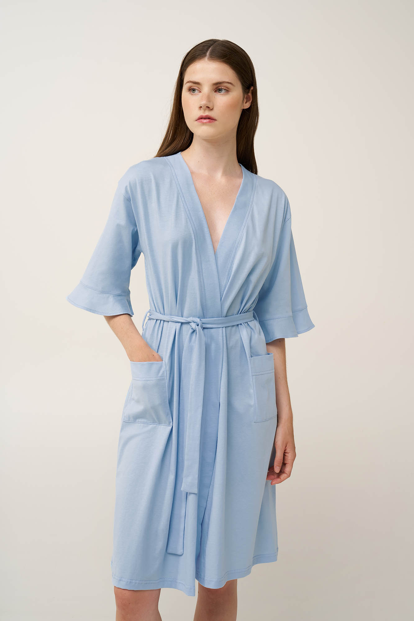 Προσθέστε στην γκαρνταρόμπα σας, αυτή τη κλασική γυναικεία ρόμπα, κατασκευασμένη από 100% βαμβάκι single jersey, προσφέροντας απαλή και φυσική αίσθηση στο δέρμα. Σχεδιασμένη σε καθαρό, μονόχρωμο ύφος, διαθέτει κλασική σταυρωτή γραμμή με κοντά μανίκια και πρακτικές πλαϊνές τσέπες για άνετη χρήση. Ιδανική για να φορεθεί πάνω από νυχτικά ή για χαλάρωση στο σπίτι, προσφέρει άνεση χωρίς όγκο, αποτελώντας μια αξιόπιστη επιλογή για την καθημερινότητα και τις ήσυχες στιγμές.