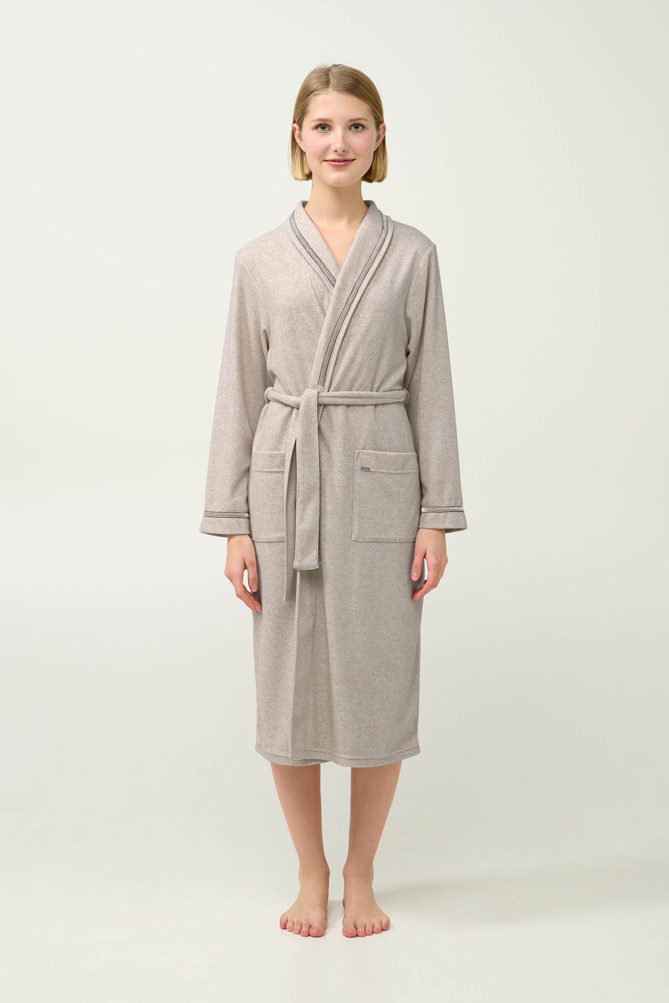 Επιλέξτε αυτή τη γυναικεία χειμερινή ρόμπα , σε κλασικό σταυρωτό σχέδιο. Κατασκευασμένη από απαλό, frottee ύφασμα με ελαστάνη, χαρίζει άνεση και κομψή εφαρμογή. Σχεδιασμένο με μακριά μανίκια και πρακτικές πλαϊνές τσέπες, είναι μια ιδανική επιλογή για στιγμές χαλάρωσης στο σπίτι ή για να τη φορέσετε πάνω πάνω από τις αγαπημένες σας πυτζάμες ένα χαλαρό απόγευμα στον καναπέ.
