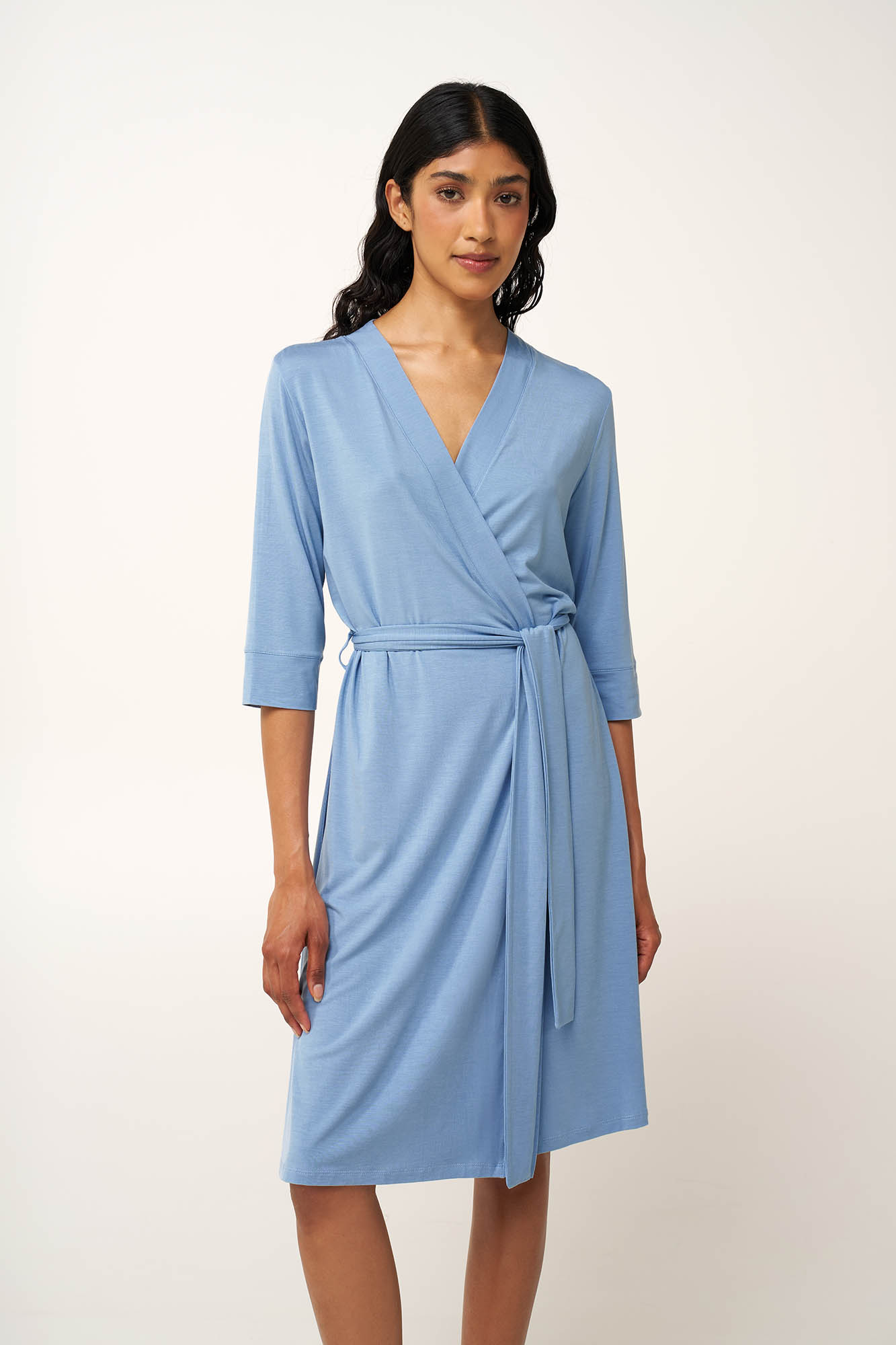Επιλέξτε μια καλοκαιρινή γυναίκεια ρόμπα από LENZING Tencel Modal Micro, σχεδιασμένη με έμφαση στην άνεση και την απλότητα. Η μονόχρωμη, σταυρωτή γραμμή της αποπνέει αβίαστη κομψότητα, ενώ τα κοντά μανίκια και η ανάλαφρη αίσθηση του υφάσματος την καθιστούν ιδανική για τις ζεστές ημέρες και νύχτες. Απαλή στην αφή και με χαλαρή εφαρμογή που κολακεύει κάθε σιλουέτα, φοριέται εύκολα πάνω από το αγαπημένο σας νυχτικό.