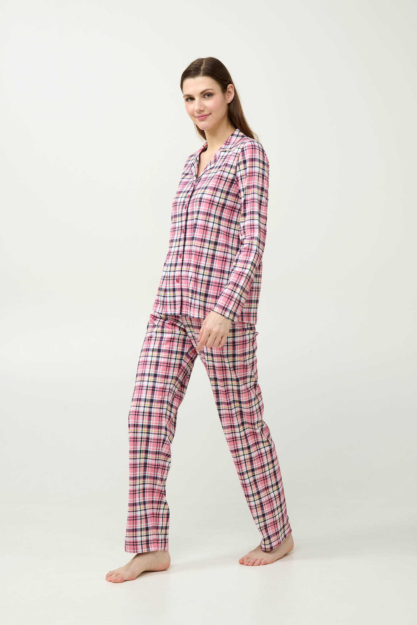 Ανανεώστε τη συλλογή σας με αυτές τις χειμερινές γυναικείες πυτζάμες με διαχρονικό καρό σχέδιο σε ροζ αποχρώσεις. Το πάνω μέρος με μακριά μανίκια και κλείνει μπροστά με κουμπιά, προσφέροντας κομψότητα και πρακτικότητα. Το σετ είναι κατασκευασμένο από 100% βαμβακερό ύφασμα s. jersey, εξασφαλίζοντας απαλότητα, διαπνοή και απόλυτη άνεση. Μια επιλογή με κλασικό χαρακτήρα που θα σας βοηθήσει να απολαύσετε κάθε στιγμή στο σπίτι.