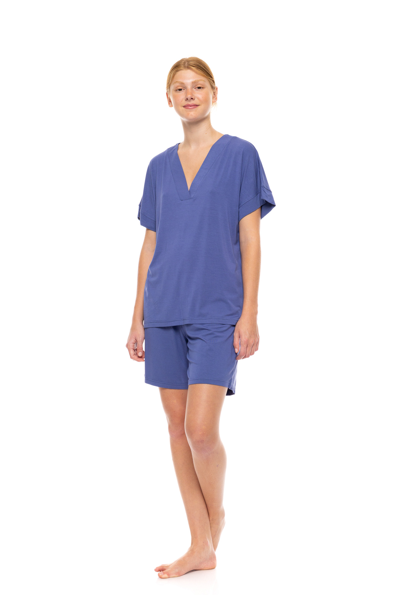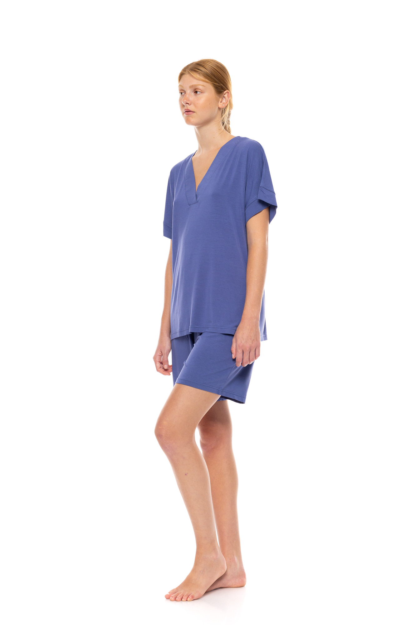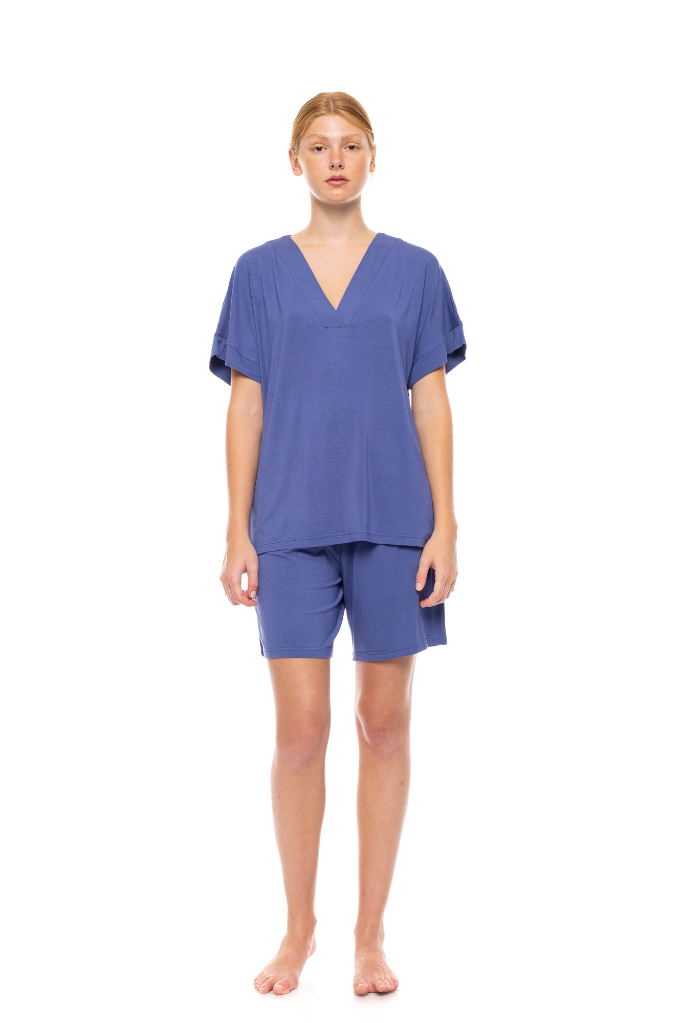 Γυναικεία Καλοκαιρινή Πύζαμα Pink Label - Σόρτς Κοντομάνικη - Cosmos Blue - BAMBOO NOS