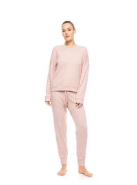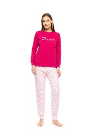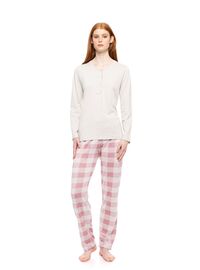 Γυναικεία χειμωνιάτικη πυτζάμα Noidinotte βαμβακερή. Νεανικό Homewear Set με μακρύ μανίκι. Μπλούζα με στρογγυλή λαιμόκοψη, ροζ κουμπιά και διακοσμητική λεπτομέρεια στο στήθος. Παντελόνι από καρώ ντεσέν με τσέπες, μαλακό λάστιχο στους αστραγάλους και ροζ φιόγκο στην μέση.