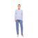 Γυναικεία πυτζάμα Pink Label από πολύ μαλακό βαμβακερό ύφασμα. Μακρυμάνικη μπλούζα V neck με μπλε και λευκές ρίγες. Μακρύ παντελόνι μπλε σε ίσια γραμμή με μαλακό λάστιχο στην μέση.