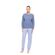 Γυναικεία πυτζάμα Pink Label. Μπλε μπλούζα μακρυμάνικη με τσέπη στο στήθος και στρογγυλή λαιμόκοψη. Μακρύ παντελόνι με blue strips print σε ίσια γραμμή με μαλακό λάστιχο στην μέση και στους αστραγάλους.