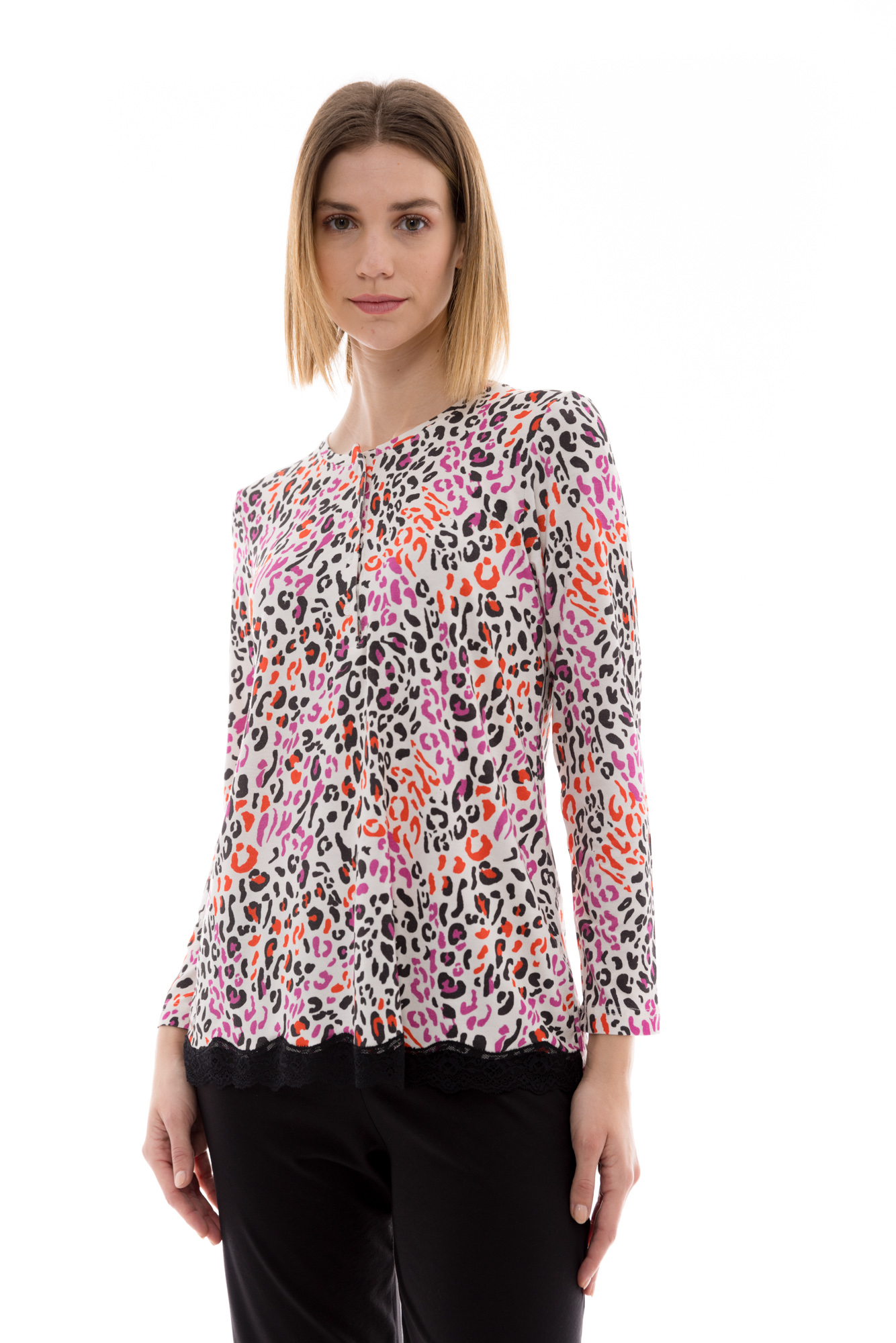 Γυναικεία Πυτζάμα Pink Label - Εμπριμέ Μπλούζα - Μονόχρωμο Παντελόνι - White Leopard