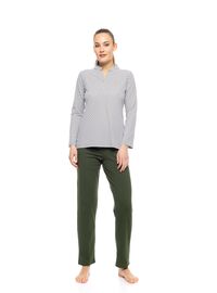 Γυναικεία πυτζάμα Pink Label από πολύ μαλακό βαμβακερό ύφασμα. Μακρυμάνικη μπλούζα στο χώμα του φουντουκιού με τσέπη στο στήθος σε άνετη γραμμή. Μακρύ παντελόνι σε ίσια γραμμή με μαλακό λάστιχο στην μέση και στους αστραγάλους.