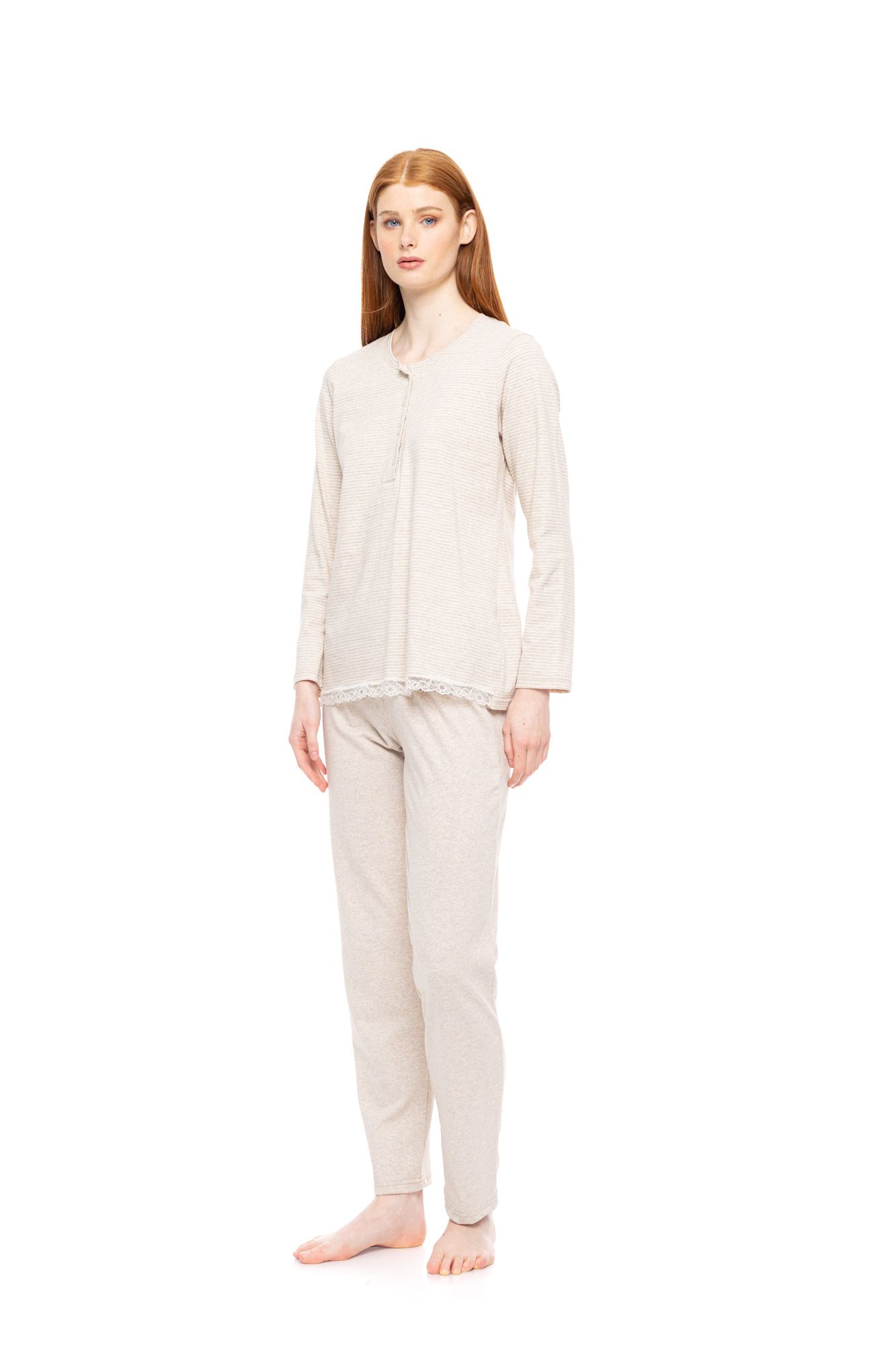 Γυναικεία Πυτζάμα Pink Label - HAZELNUT STRIPES - Με Πατιλέτα - Regular Fit - Cotton