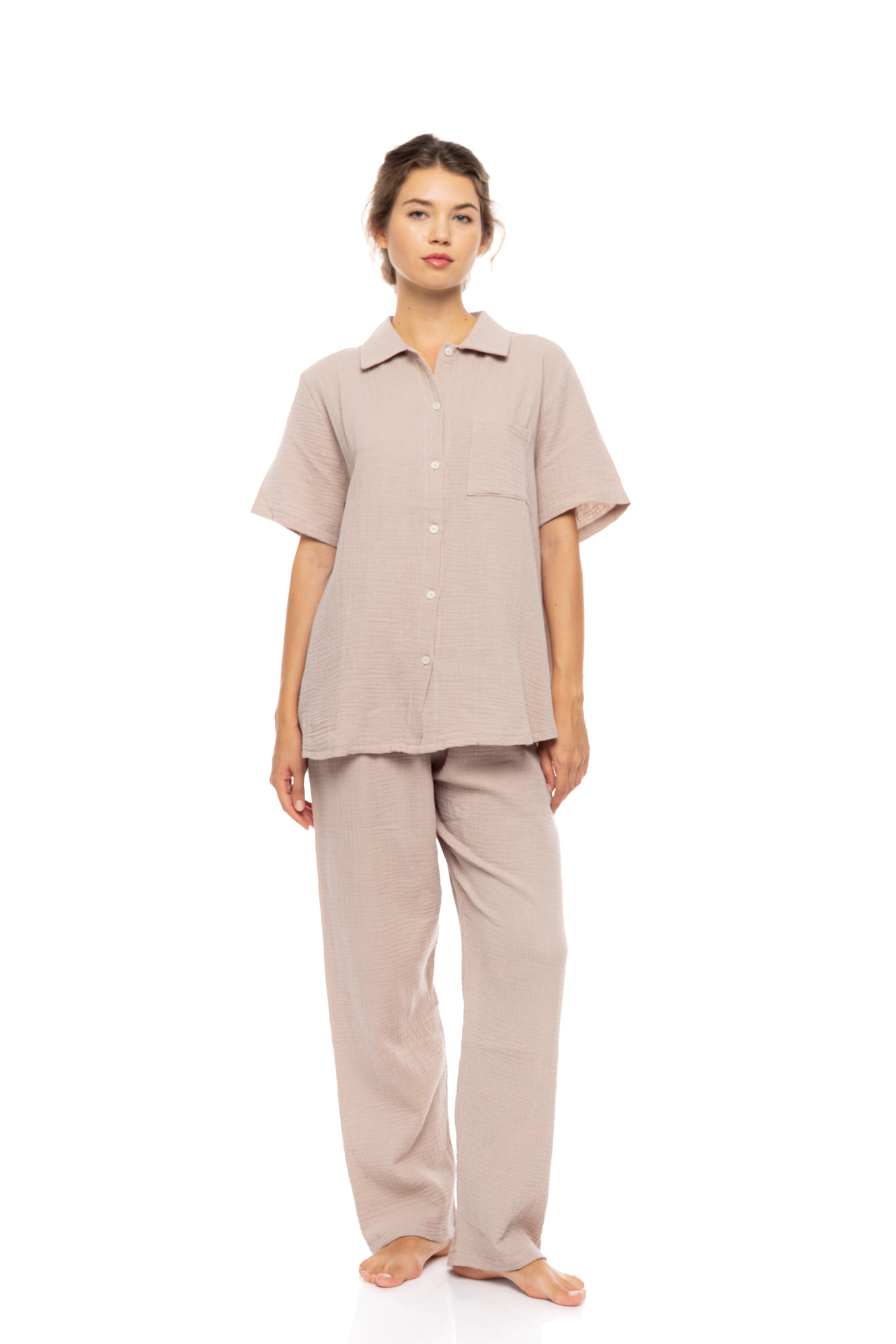 Γυναικεία πυτζάμα Pink Label - Κοντομάνικη Με Μακρύ Παντελόνι - Skin - Σεμιζιέ - Cotton