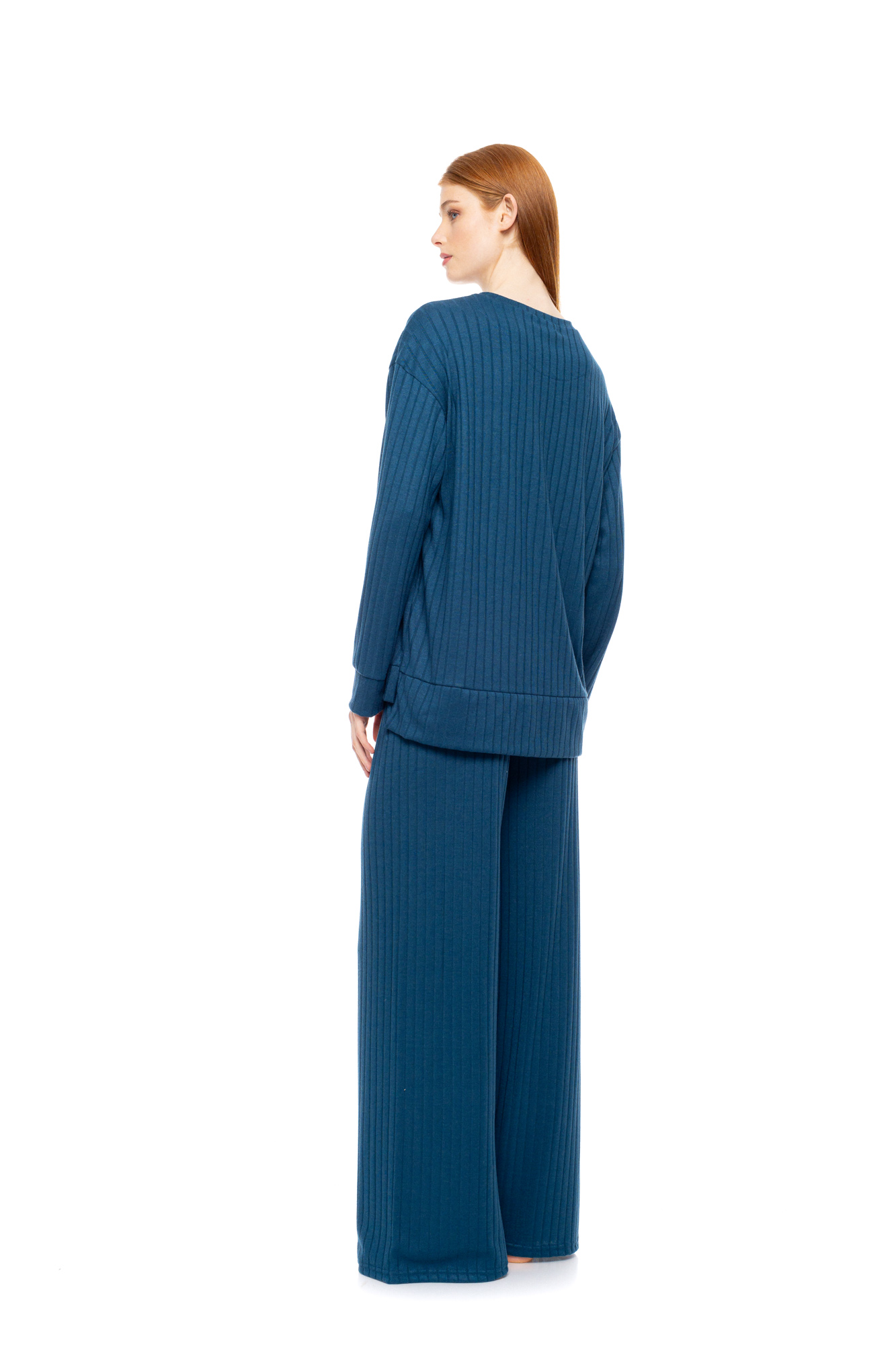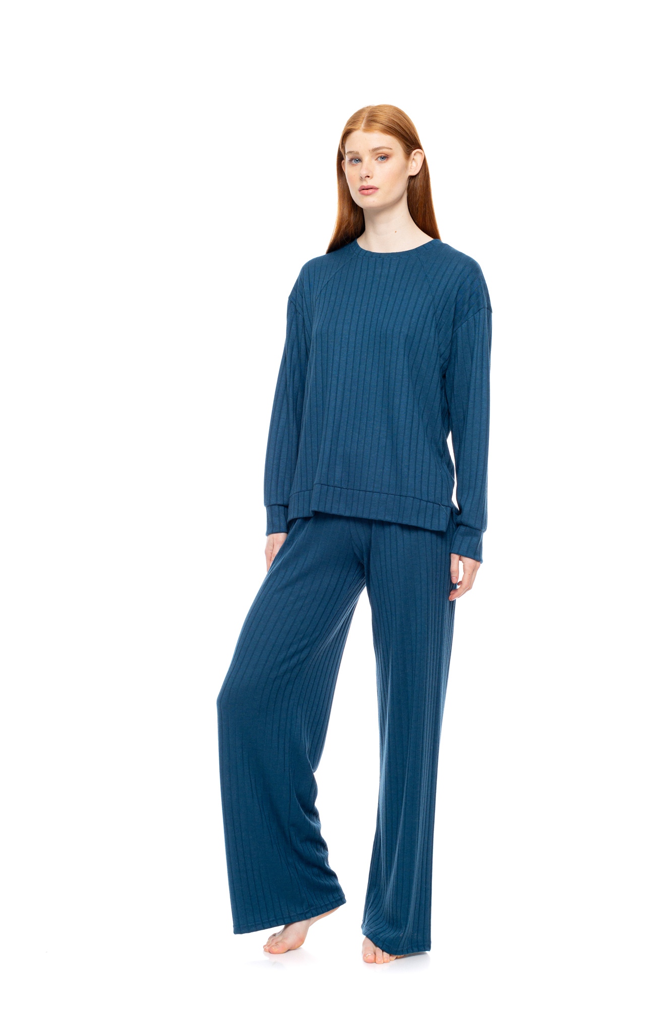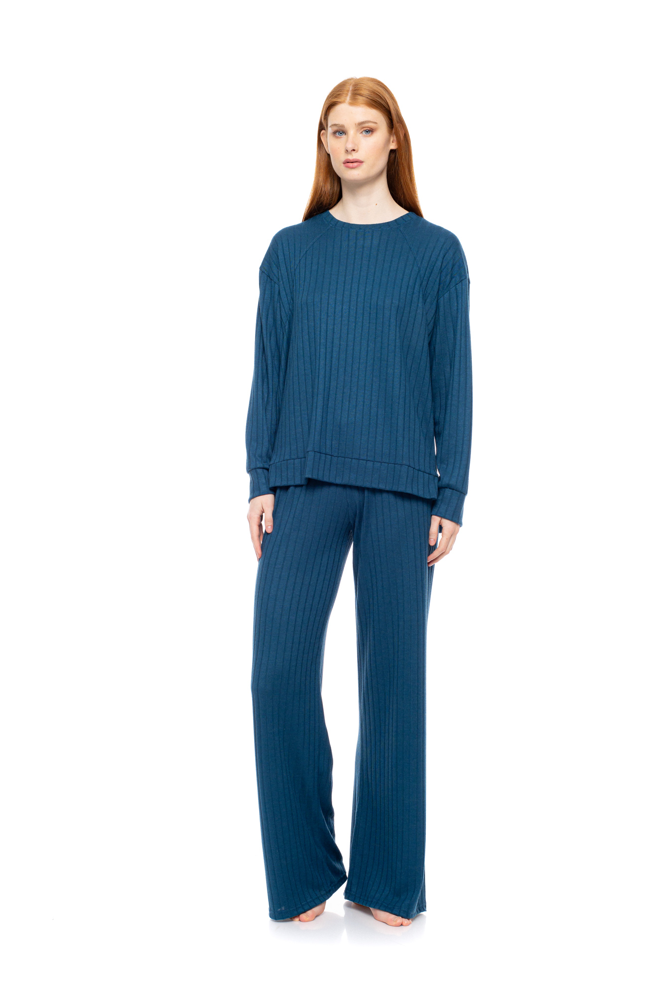 Γυναικεία πυτζάμα Pink Label. Mint μπλούζα μακρυμάνικη σε φαρδιά γραμμή με στρογγυλή λαιμόκοψη. Μακρύ μονόχρωμο παντελόνι σε ίσια γραμμή με μαλακό λάστιχο στην μέση.
