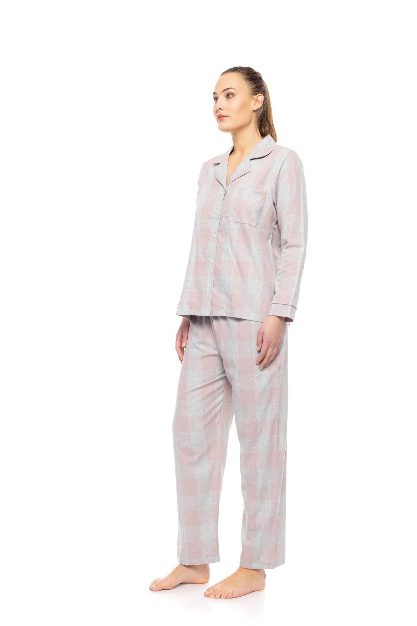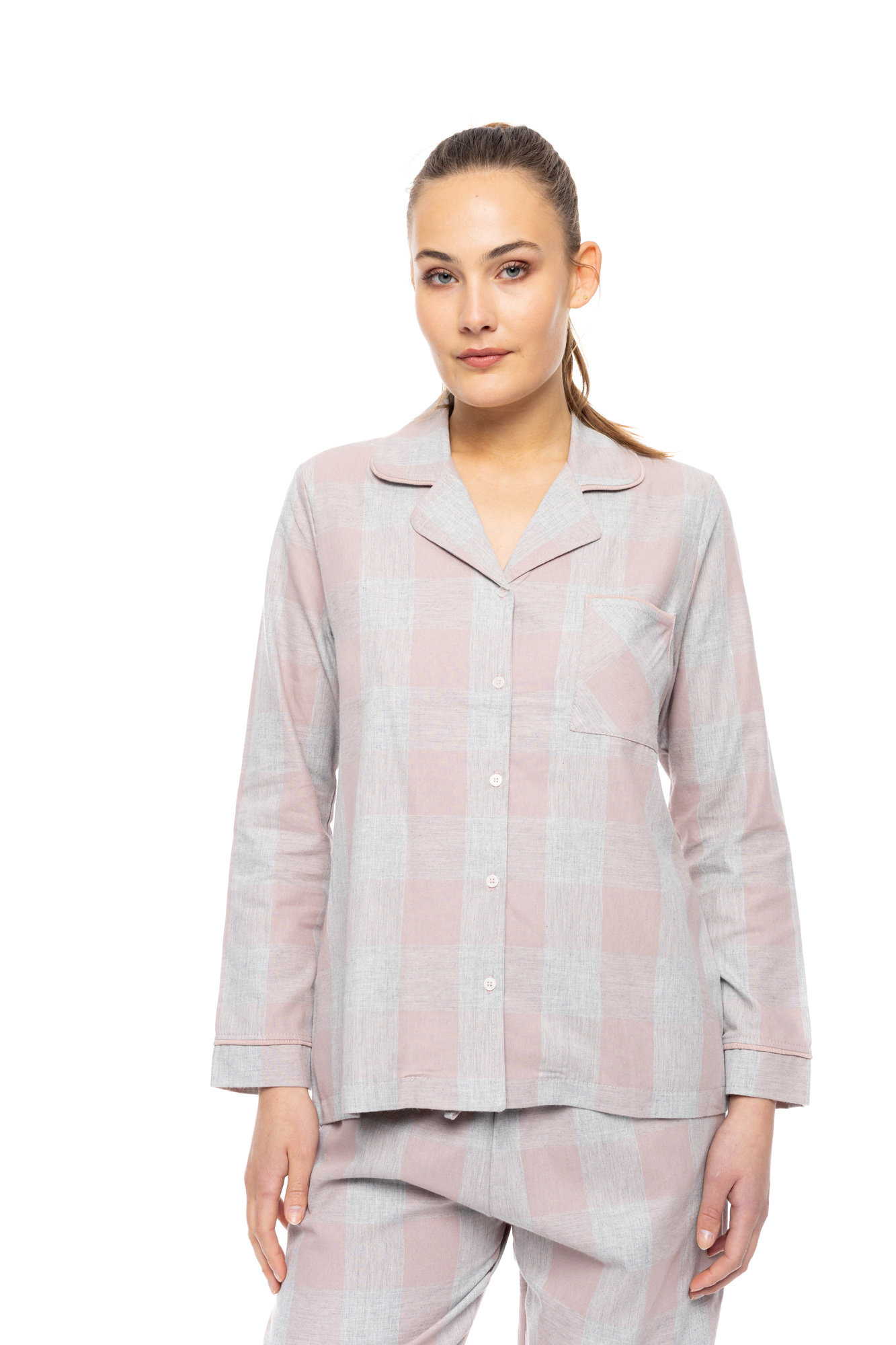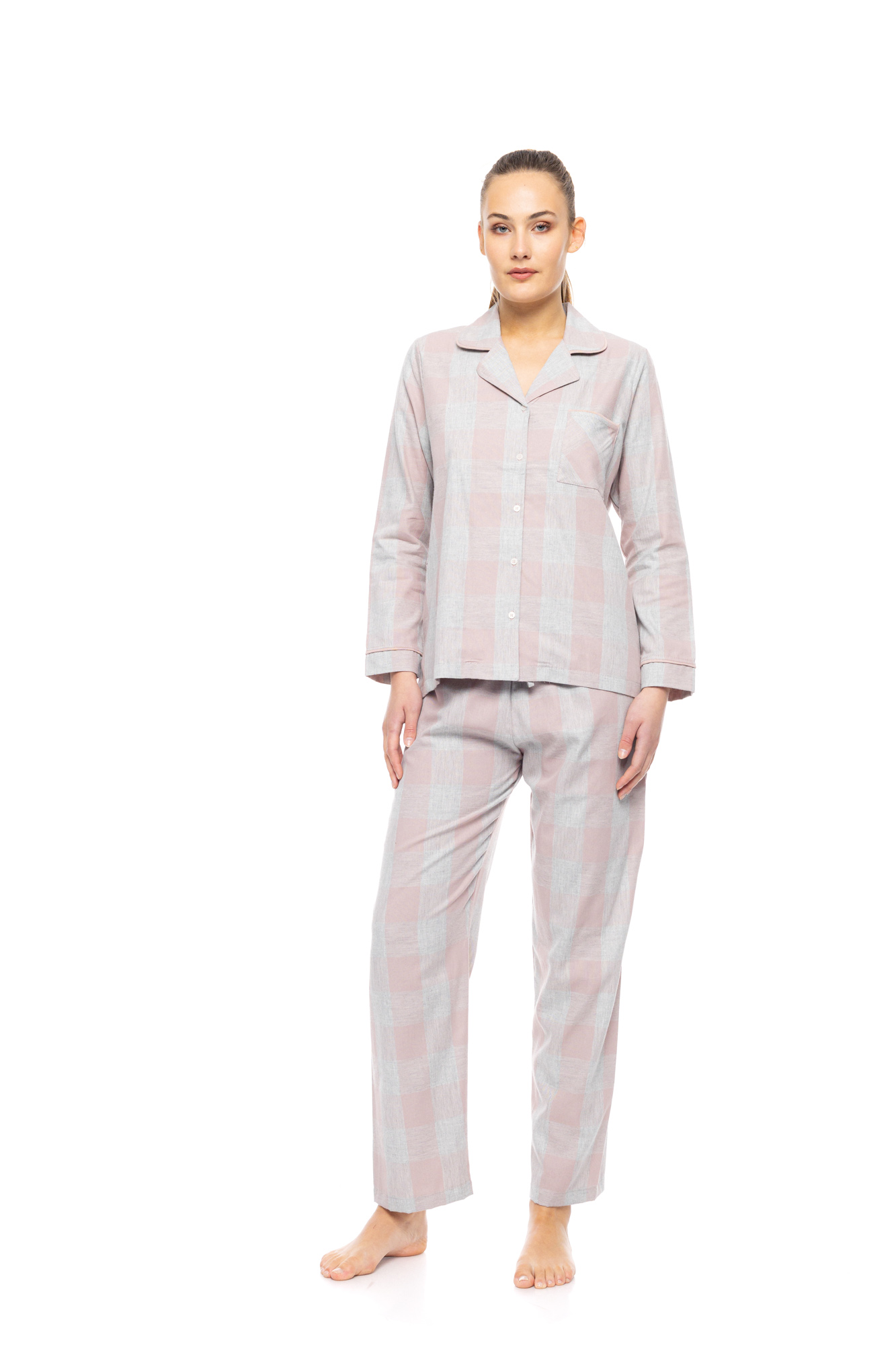 Γυναικεία Πυτζάμα Pink Label - Σεμιζιέ - Απαλό ροζ - Καρό print - Regular Fit - Cotton