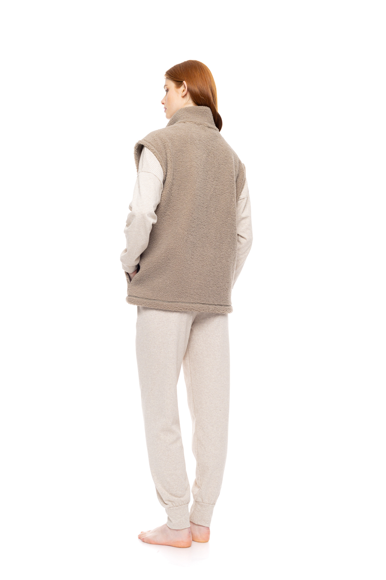 Γυναικεία Ρόμπα - γιλέκο Pink Label FLEECE . Νεανική αμάνικη Ρόμπα κοντή Sand σε ίσια γραμμή κατασκευασμένη από απαλό και ζεστό ύφασμα, τσέπες και κλείσιμο με φερμουάρ.
