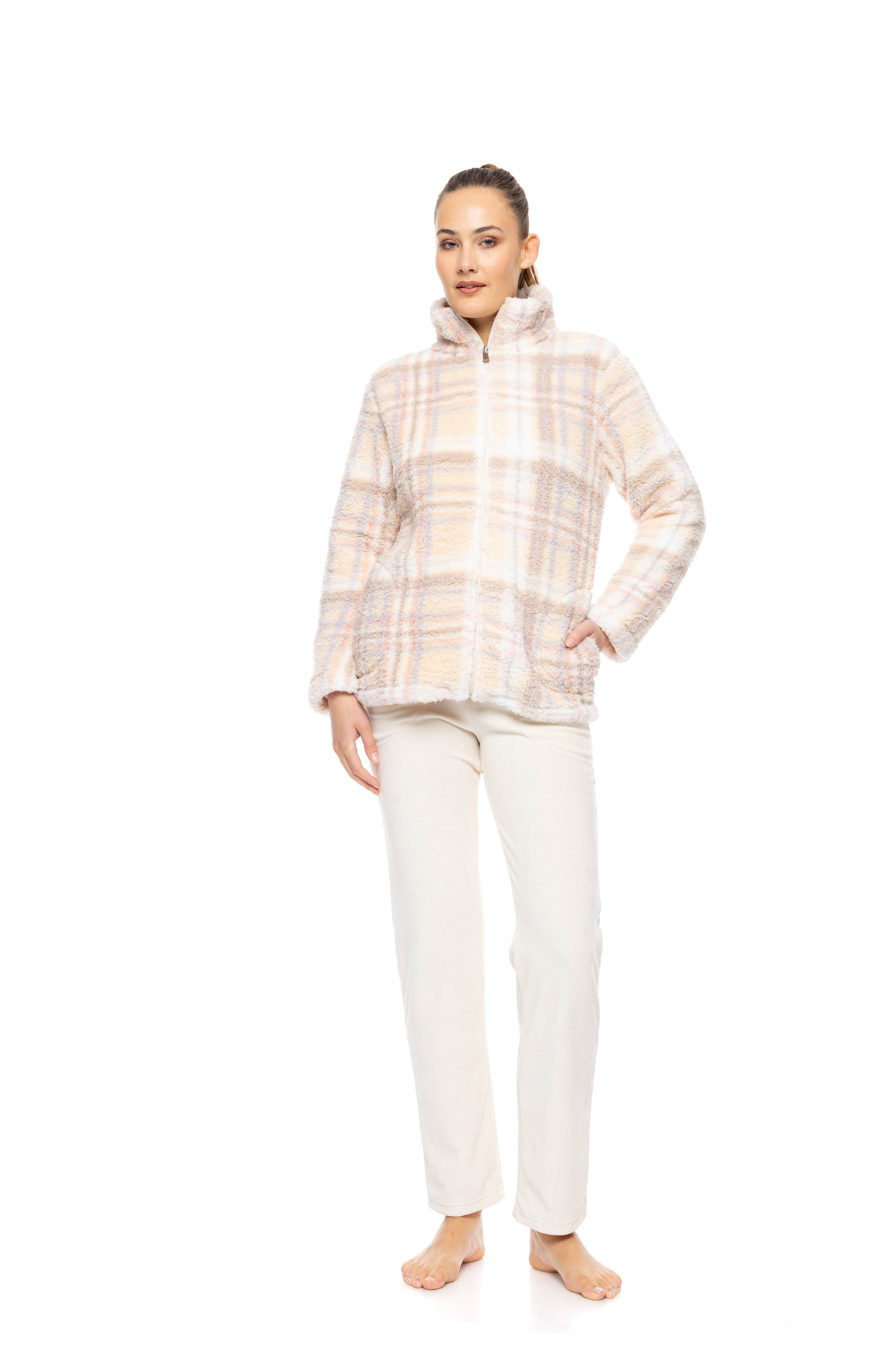 Γυναικεία Ρόμπα Pink Label Καρό Fleece soft Plaid. Κοντή ρόμπα με τσέπες και κλεισιμο με φερμουάρ.