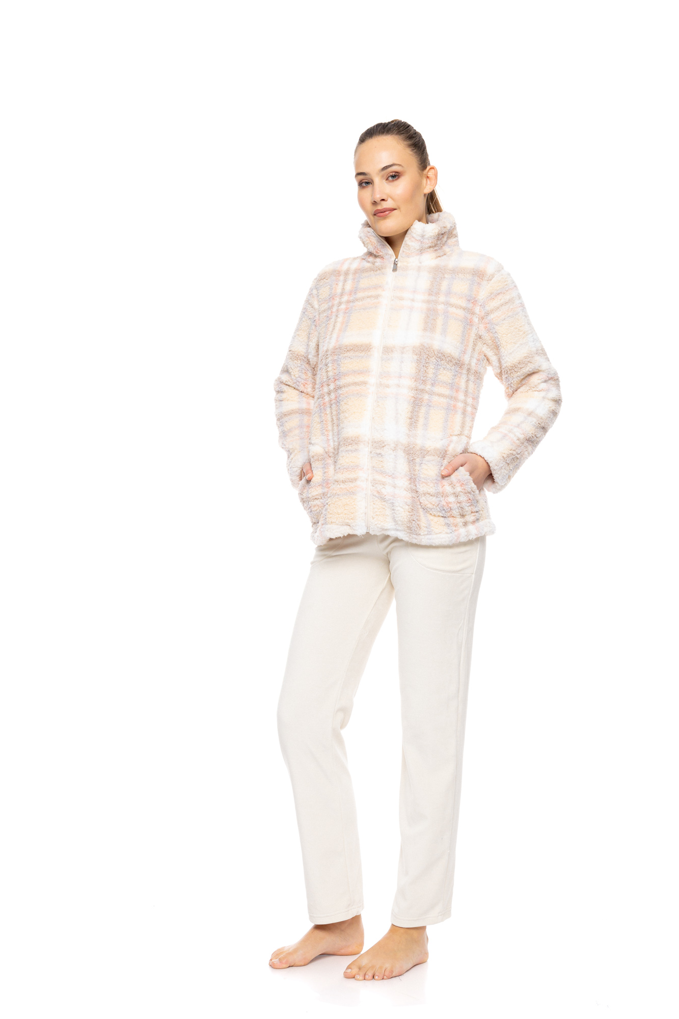 Γυναικεία Ρόμπα Pink Label Καρό Fleece soft Plaid. Κοντή ρόμπα με τσέπες και κλεισιμο με φερμουάρ.
