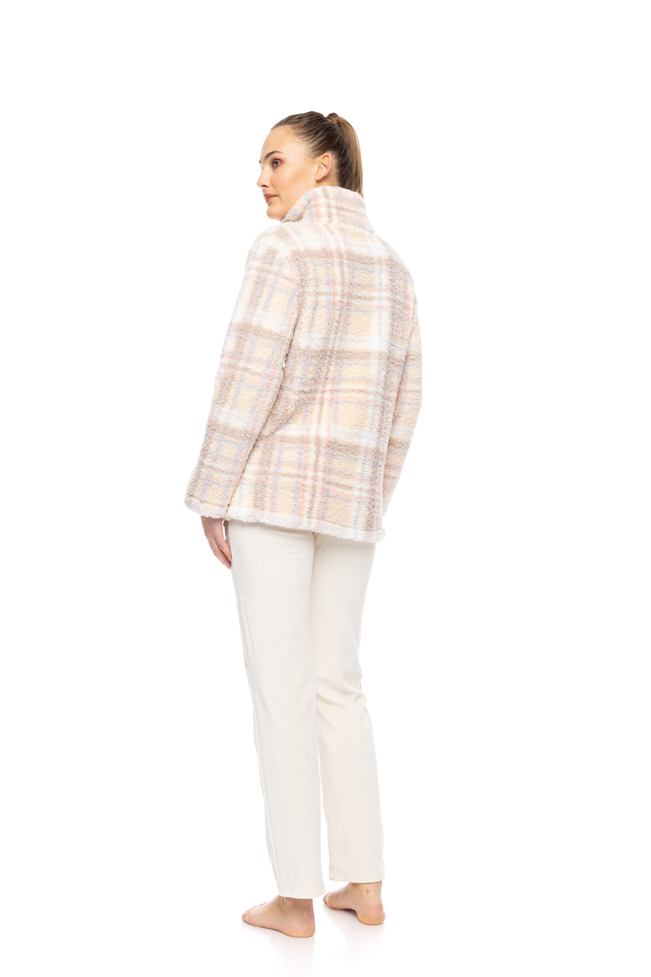 Γυναικεία Ρόμπα κοντή Pink Label - Καρό με φερμουάρ - Fleece Plaid - Polyester - Regular Fit