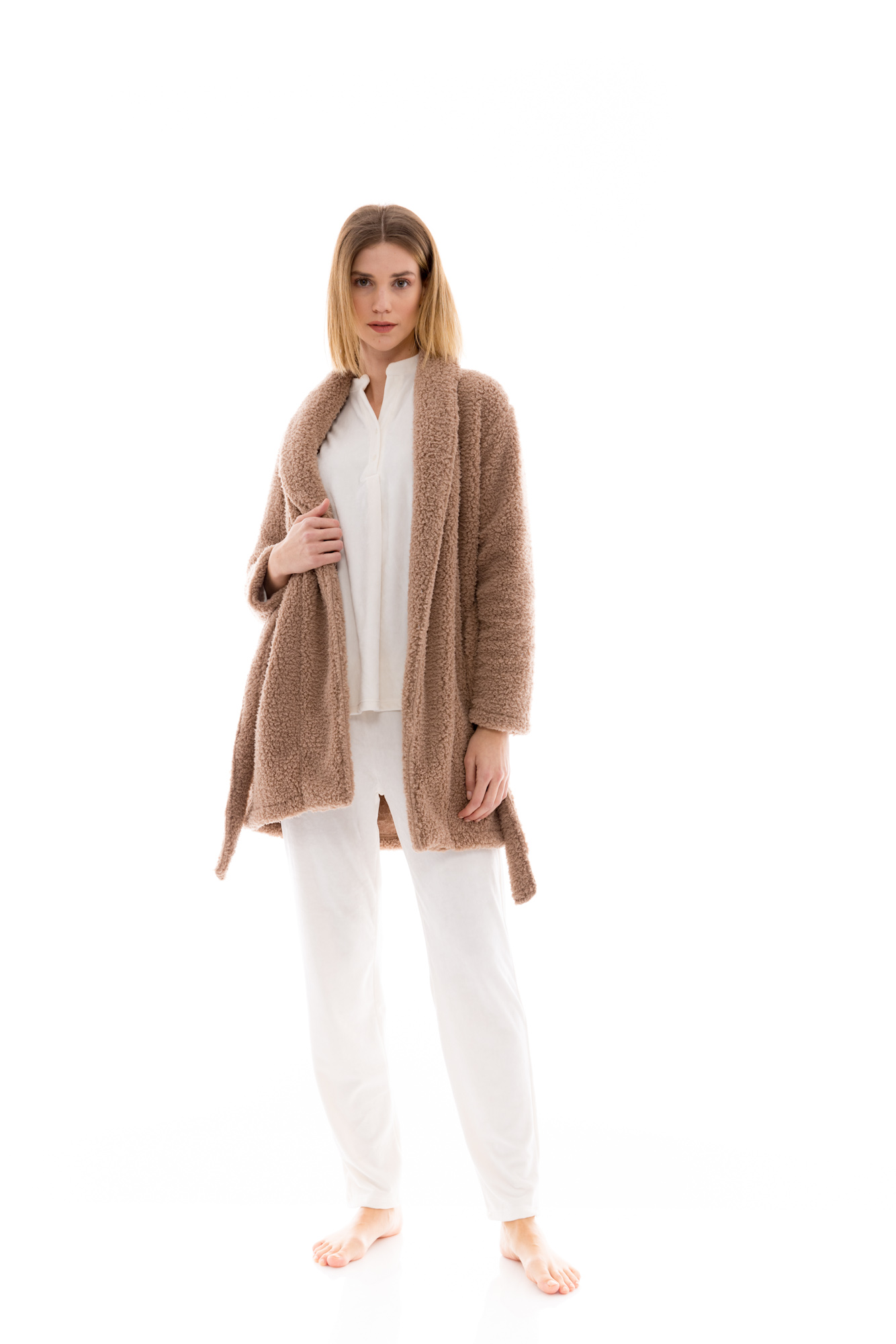 Γυναικεία Ρόμπα με μακρύ μανίκι Pink Label. Νεανική Ρόμπα κοντή Skin σε ίσια γραμμή κατασκευασμένη από ζεστό fleece ύφασμα, με ζώνη για δέσιμο στην μέση και τσέπες.