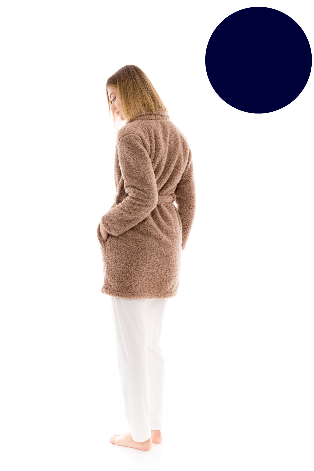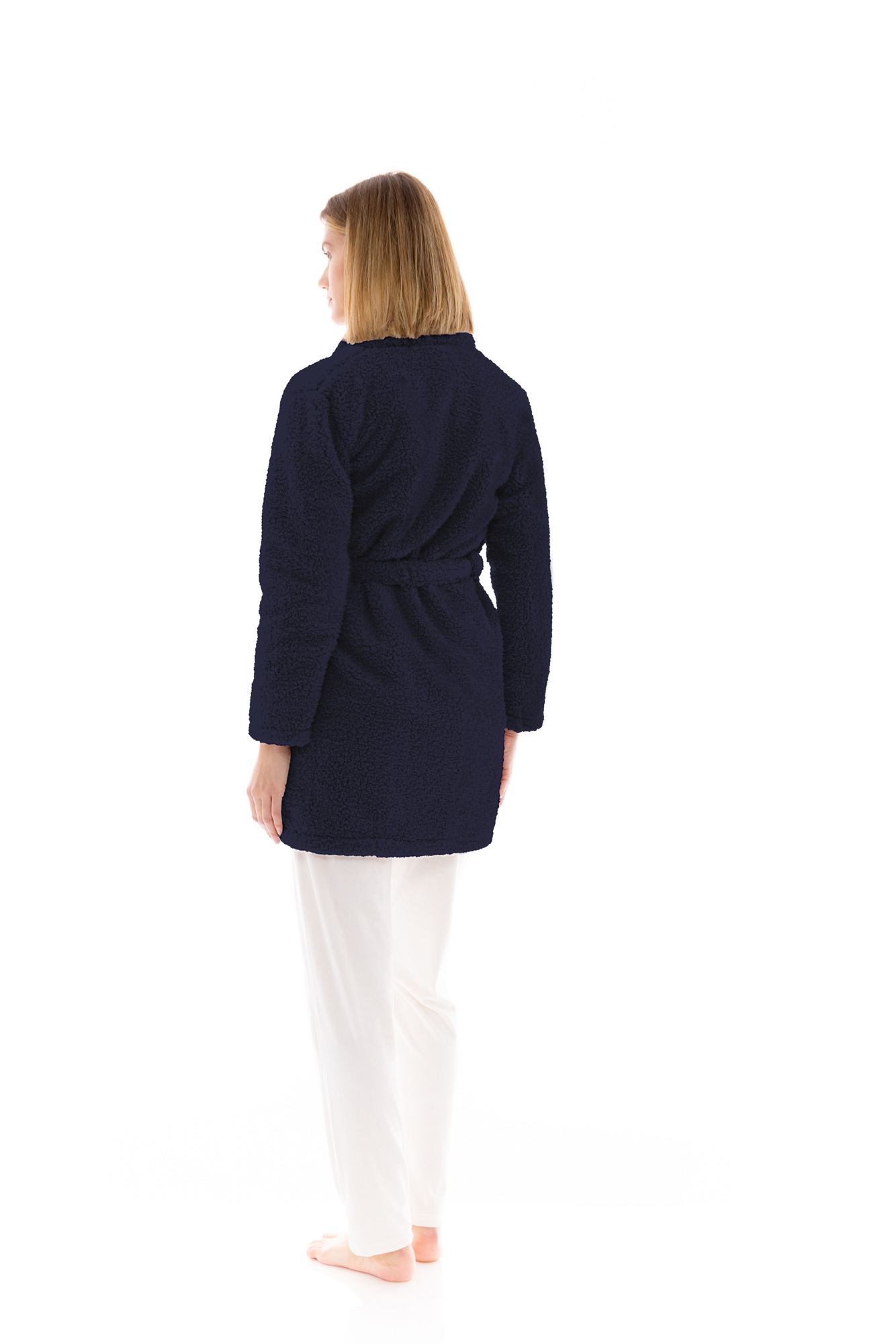 Γυναικεία Ρόμπα με μακρύ μανίκι Pink Label. Νεανική Ρόμπα κοντή Yacht Blue σε ίσια γραμμή κατασκευασμένη από ζεστό fleece ύφασμα, με ζώνη για δέσιμο στην μέση και τσέπες.