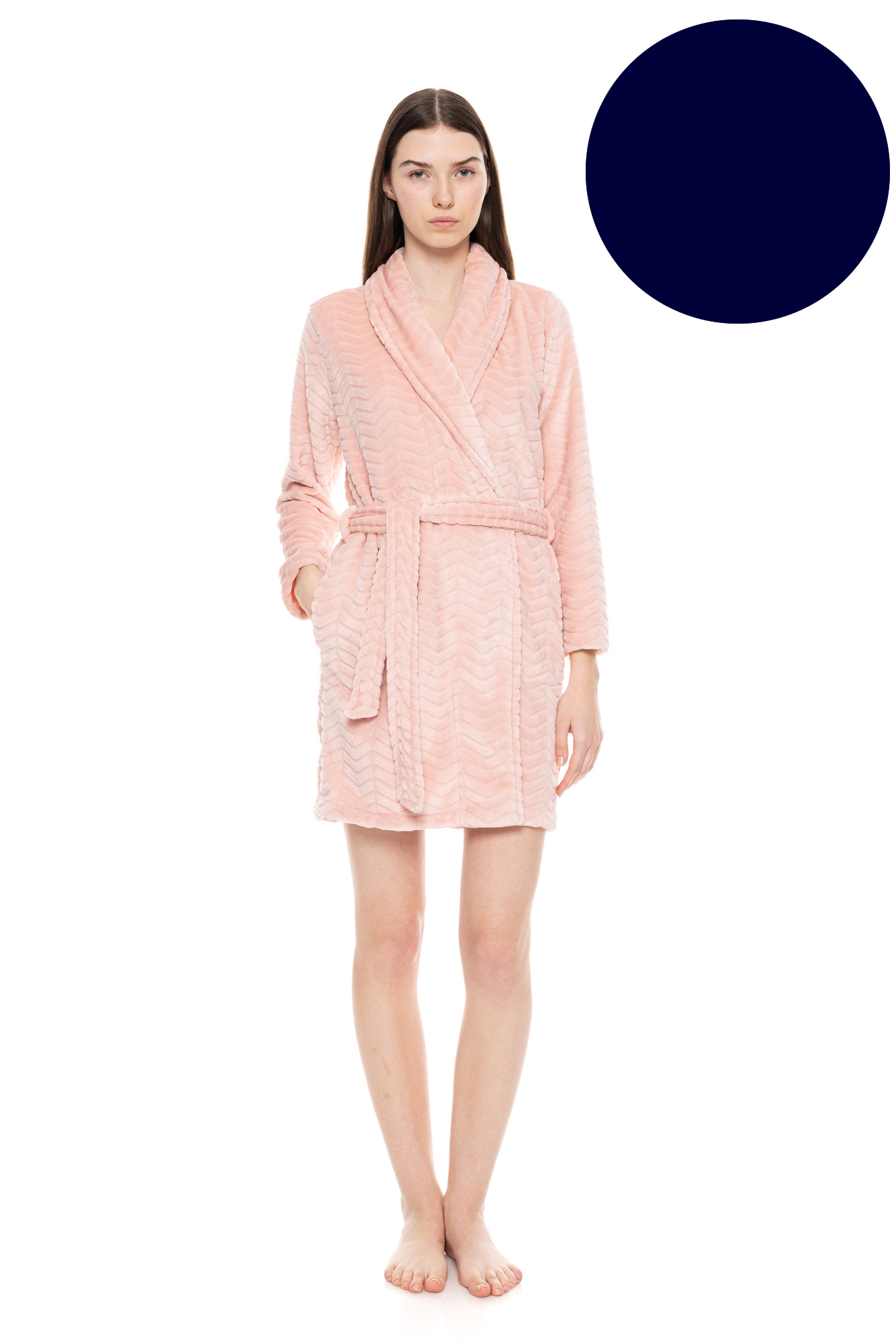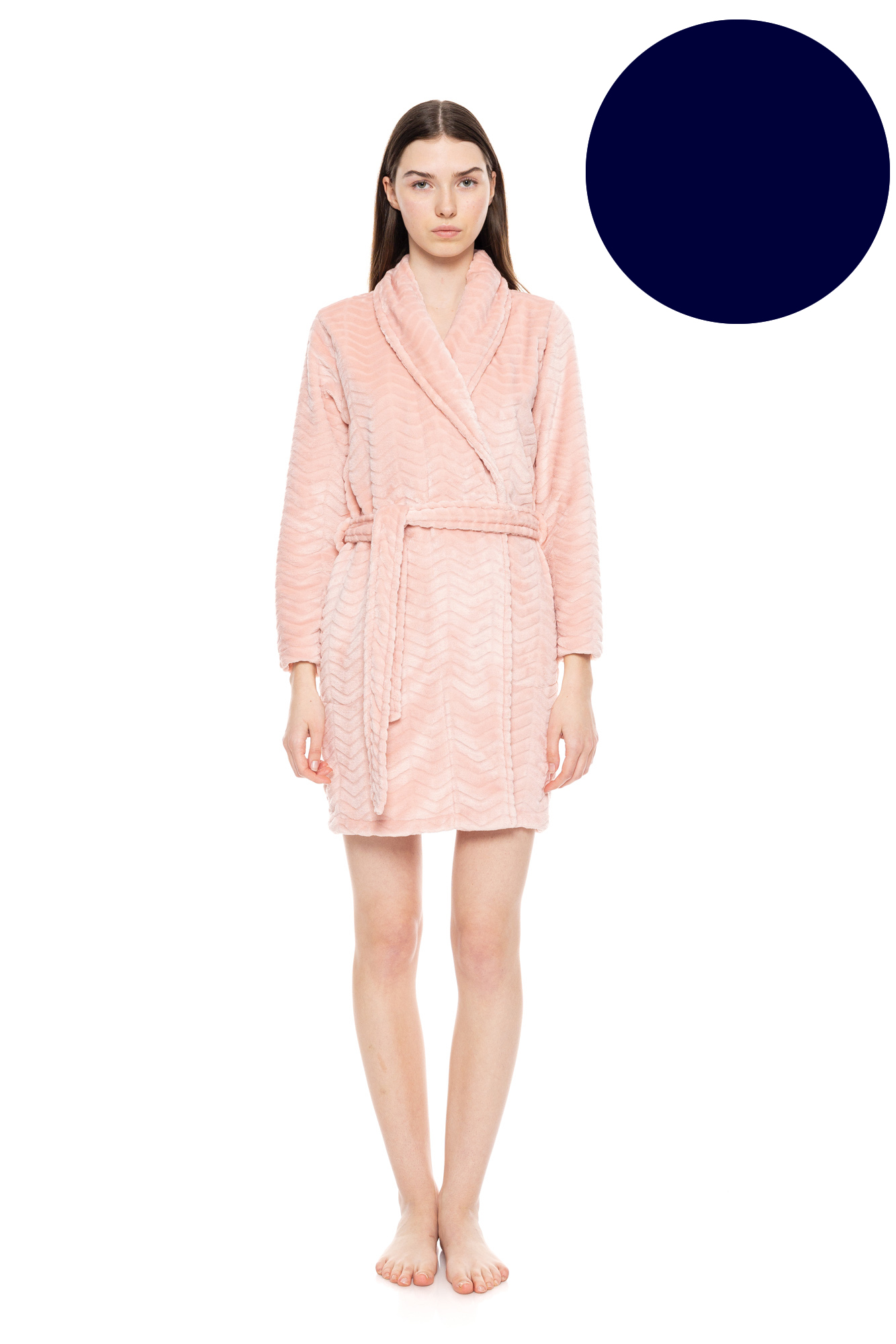 Γυναικεία Ρόμπα με μακρύ μανίκι Pink Label. Νεανική Ρόμπα κοντή Yacht Blue σε ίσια γραμμή κατασκευασμένη από ζεστό fleece ύφασμα, με ανάγλυφες ρίγες, ζώνη για δέσιμο στην μέση και τσέπες.
