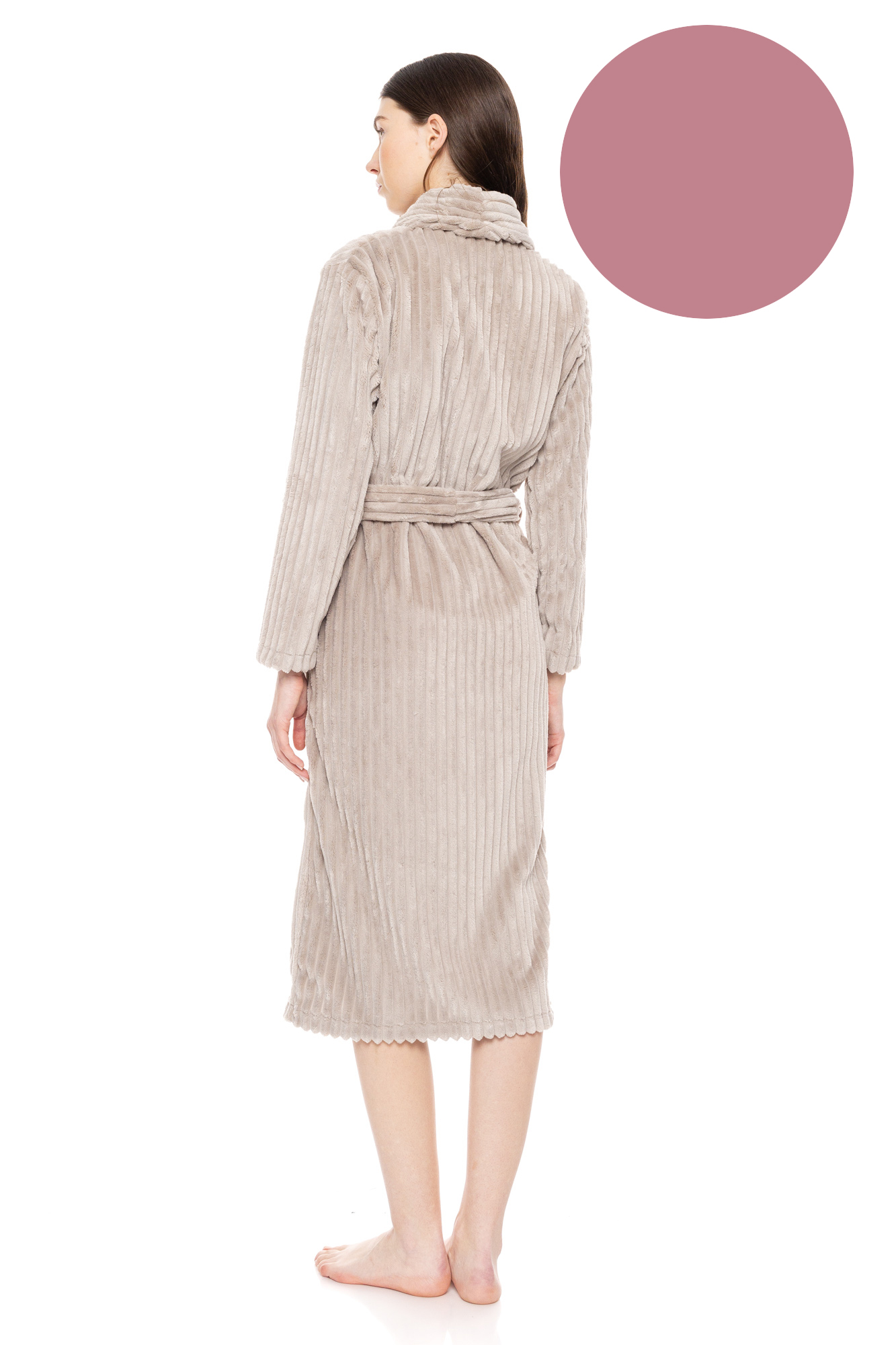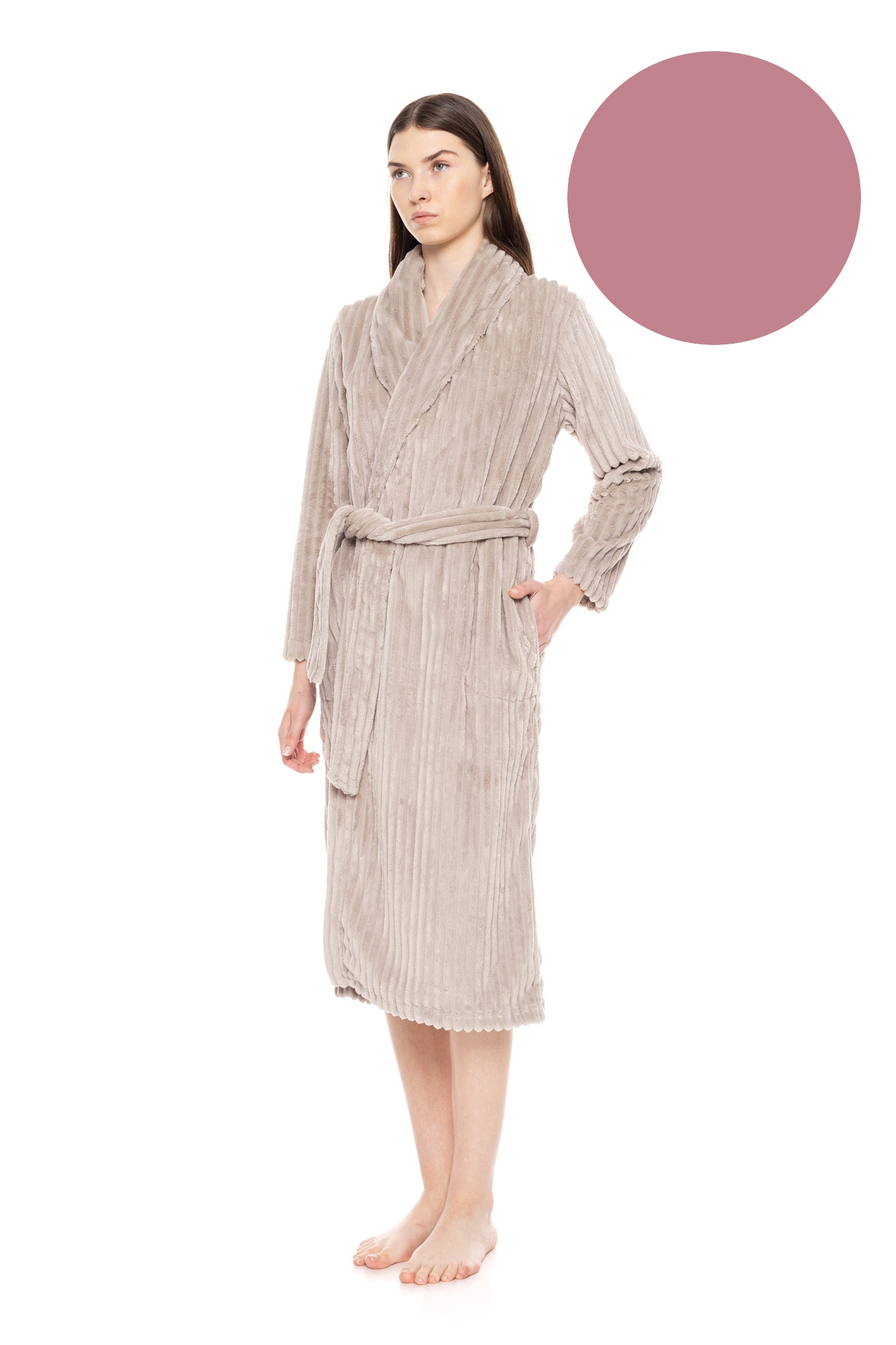 Γυναικεία Ρόμπα με μακρύ μανίκι Pink Label. Νεανική Ρόμπα μακριά Dusty Pink σε ίσια γραμμή κατασκευασμένη από ζεστό fleece ύφασμα, με ανάγλυφες ρίγες, ζώνη για δέσιμο στην μέση και τσέπες.