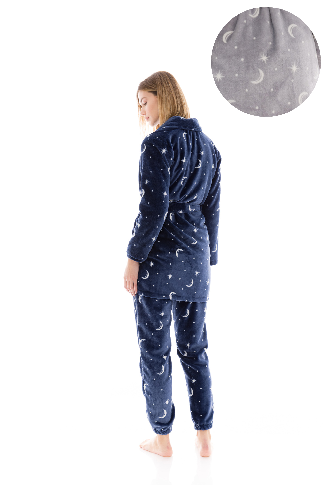 Γυναικεία Ρόμπα Pink Label NIGHT SKY Fleece. Κοντή ρόμπα με τσέπες και ζώνη στην μέση.