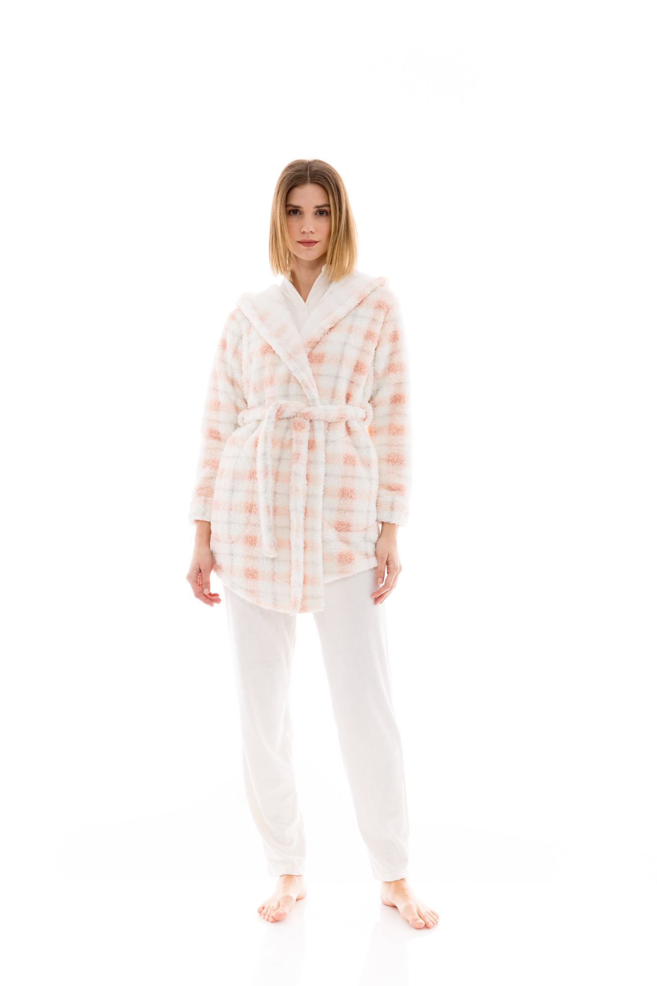 Γυναικεία Ρόμπα Pink Label Καρό Fleece Plaid. Κοντή ρόμπα με κουκούλα, τσέπες και ζώνη στην μέση.