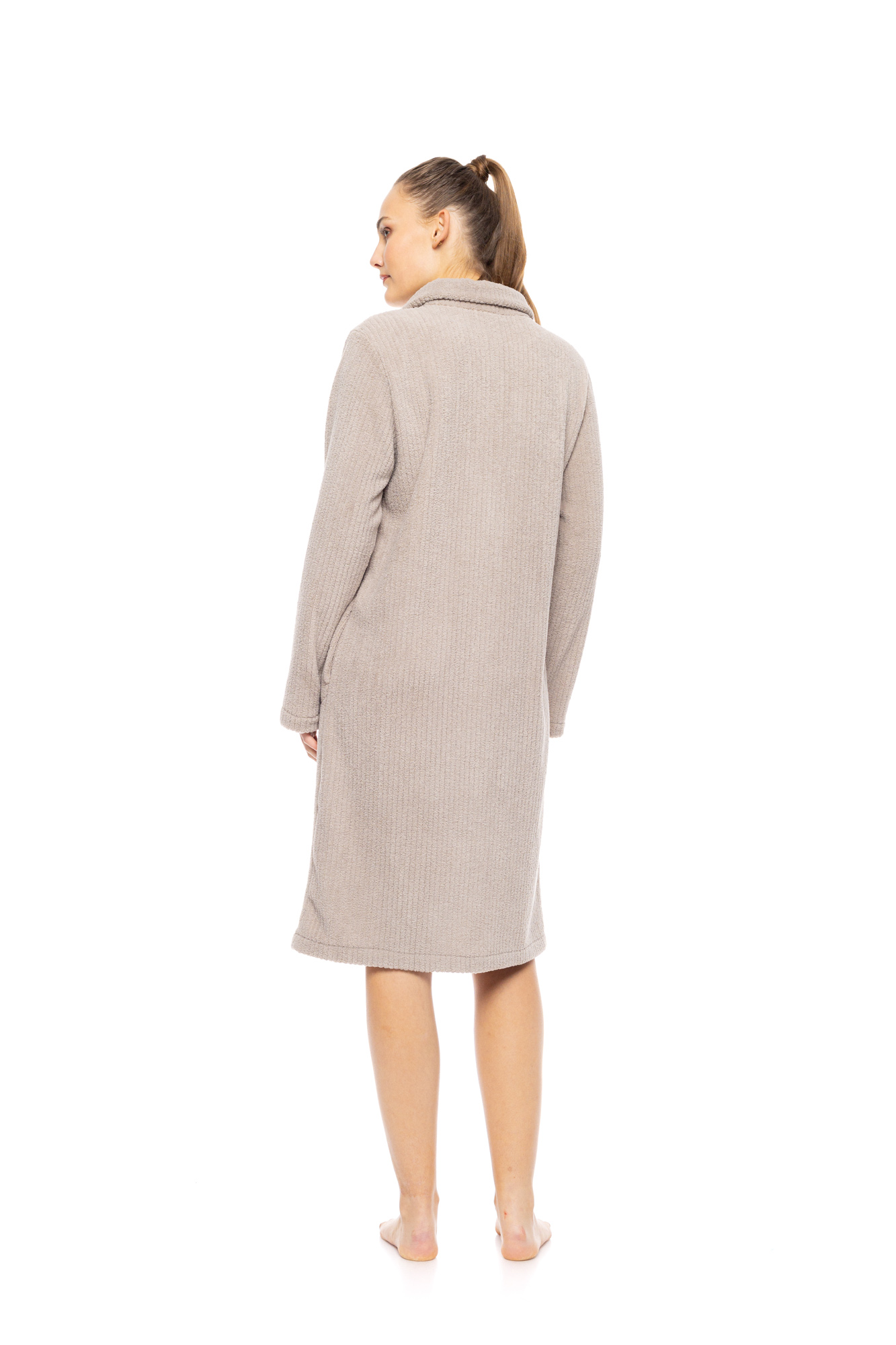 Γυναικεία Ρόμπα με μακρύ μανίκι Pink Label FLEECE STRIPE. Νεανική Ρόμπα midi Sand σε ίσια γραμμή κατασκευασμένη από απαλό και ζεστό ύφασμα, τσέπες και κλείσιμο με φερμουάρ.