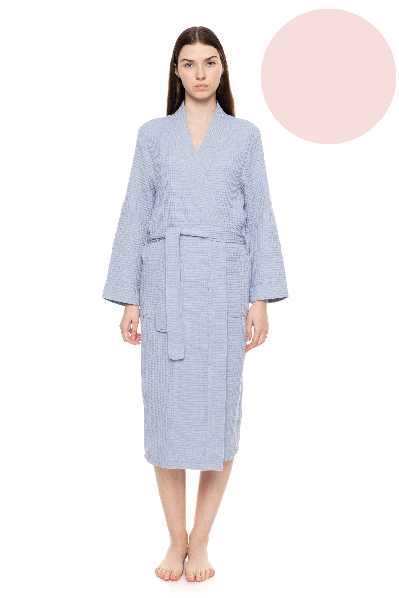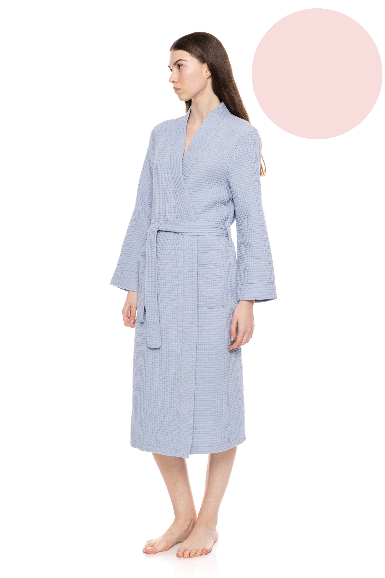 Γυναικεία Ρόμπα με μακρύ μανίκι Pink Label. Νεανική Ρόμπα midi Baby Pink σε ίσια γραμμή κατασκευασμένη από δροσερό βαμβακερό ύφασμα που επιτρέπει στο δέρμα να αναπνέει, ζώνη για δέσιμο στην μέση και τσέπες.