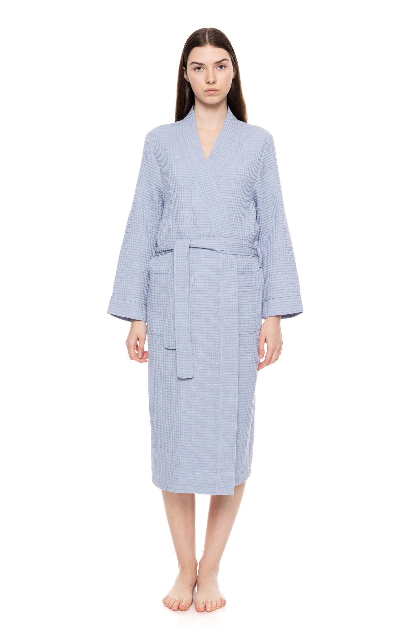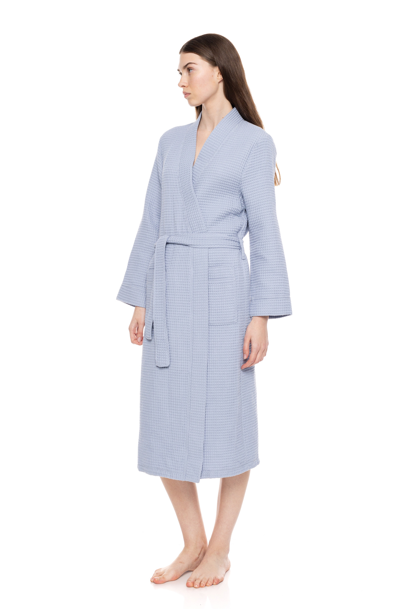 Γυναικεία Ρόμπα με μακρύ μανίκι Pink Label. Νεανική Ρόμπα midi λευκή σε ίσια γραμμή κατασκευασμένη από δροσερό βαμβακερό ύφασμα που επιτρέπει στο δέρμα να αναπνέει, ζώνη για δέσιμο στην μέση και τσέπες.
