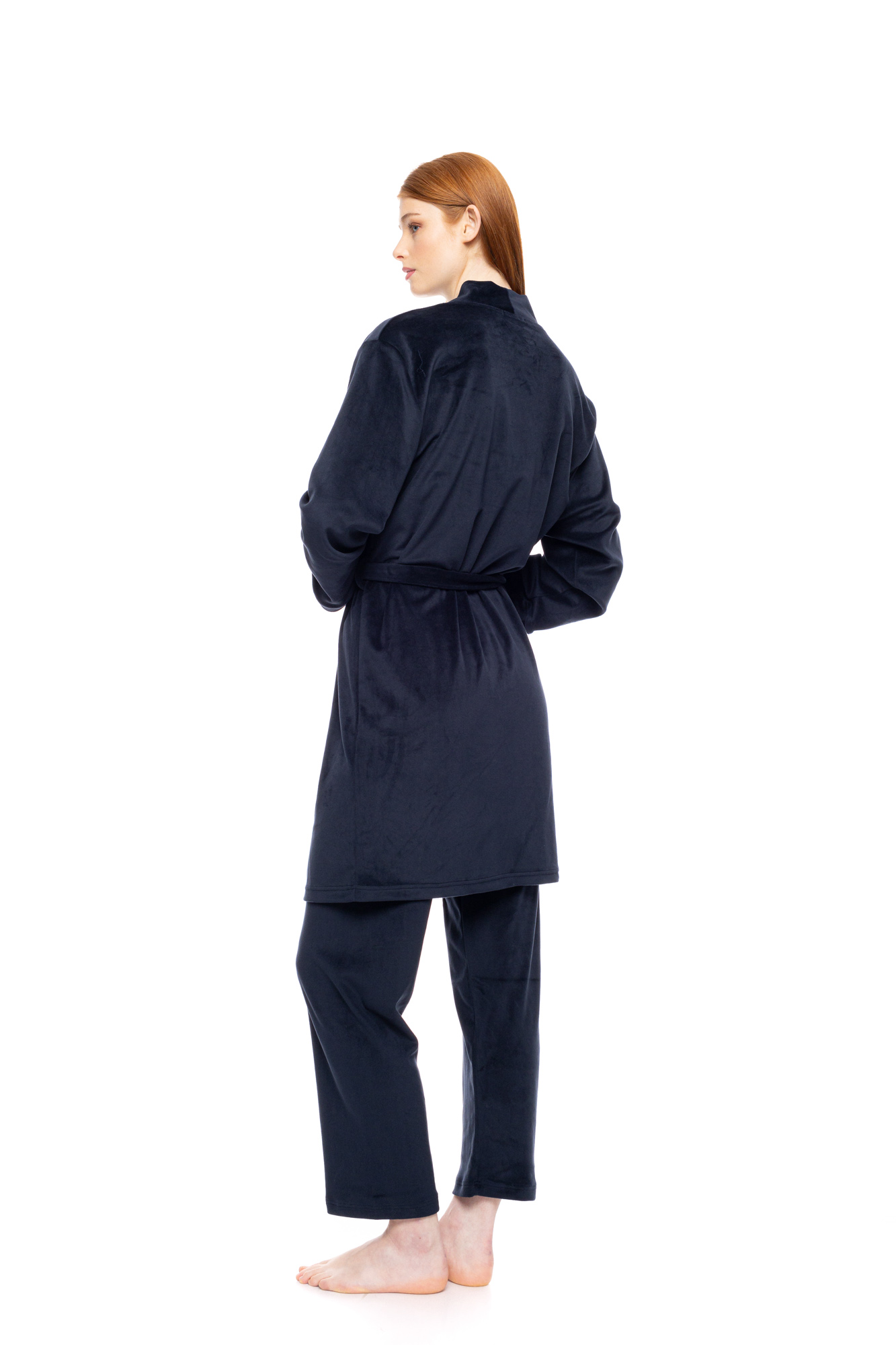 Γυναικεία Ρόμπα με μακρύ μανίκι Pink Label. Νεανική Ρόμπα κοντή Yacht Blue σε ίσια γραμμή κατασκευασμένη από ζεστό Soft Velvet ύφασμα, με ζώνη για δέσιμο στην μέση.