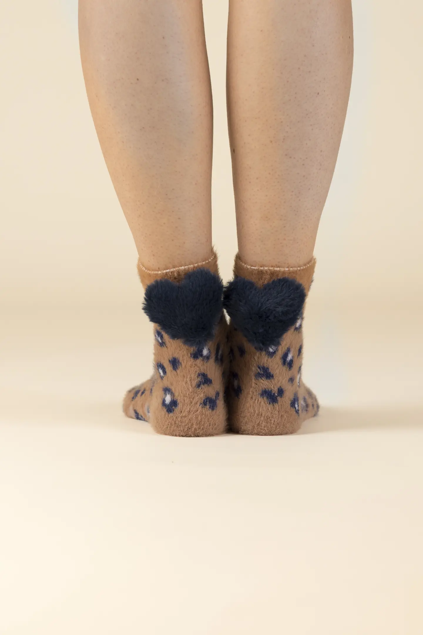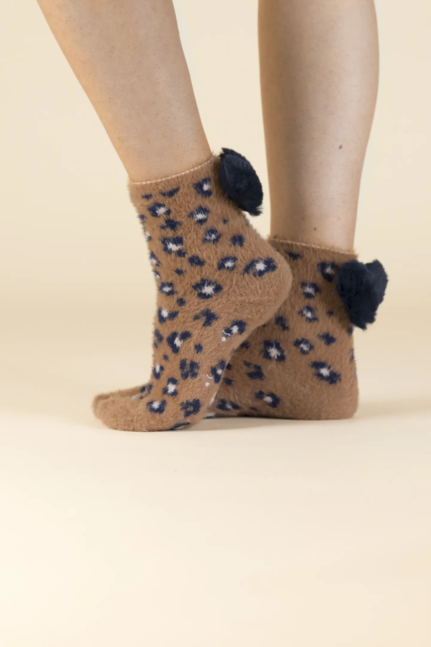 Γυναικείες κάλτσες σπιτιού Noidinotte καρό λεοπάρ . Ζεστές κάλτσες Fleece με διακοσμητικό φιόγκο στο πάνω μέρος. Διαθέτουν αντιολισθικό πάτο.