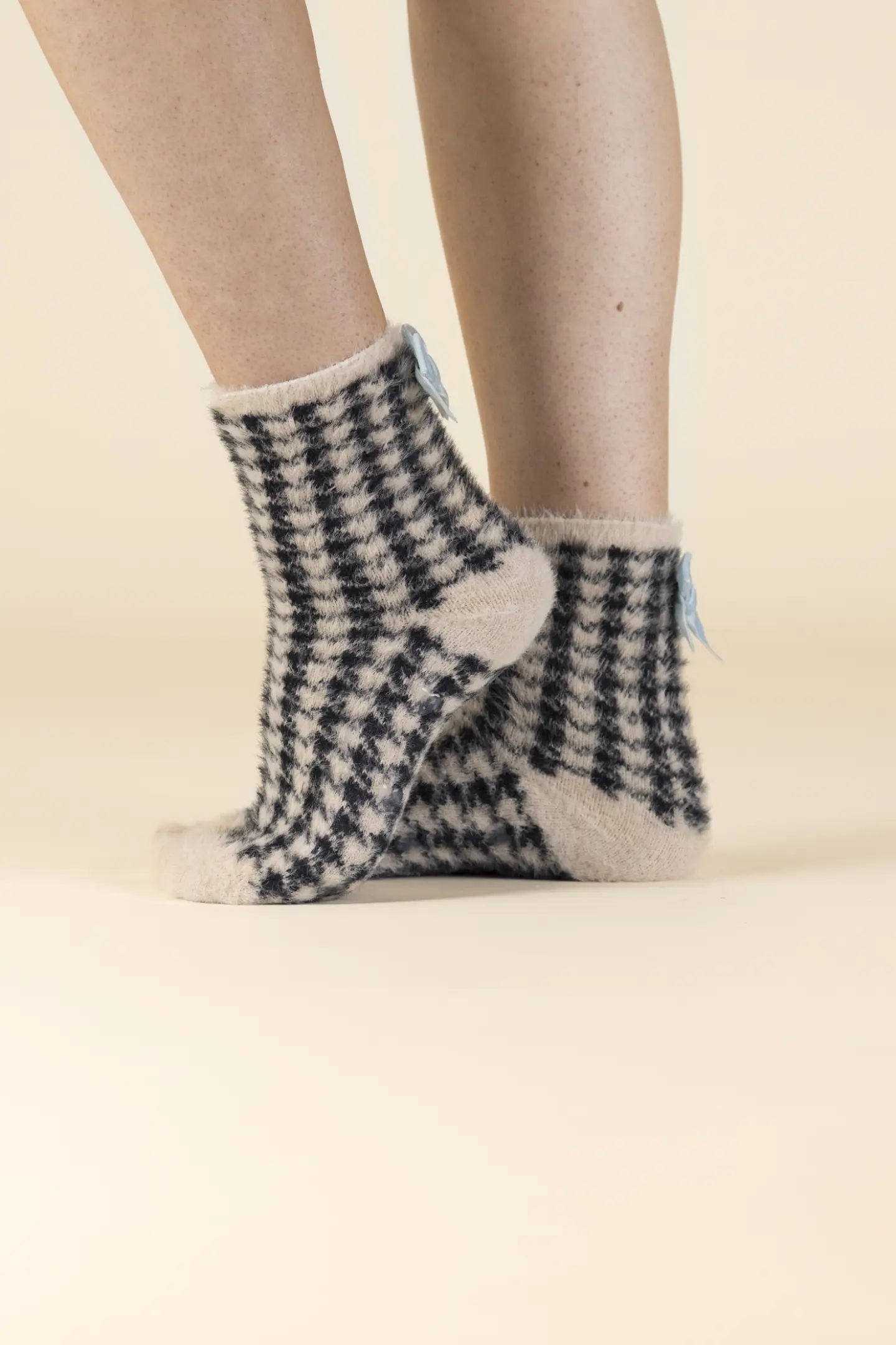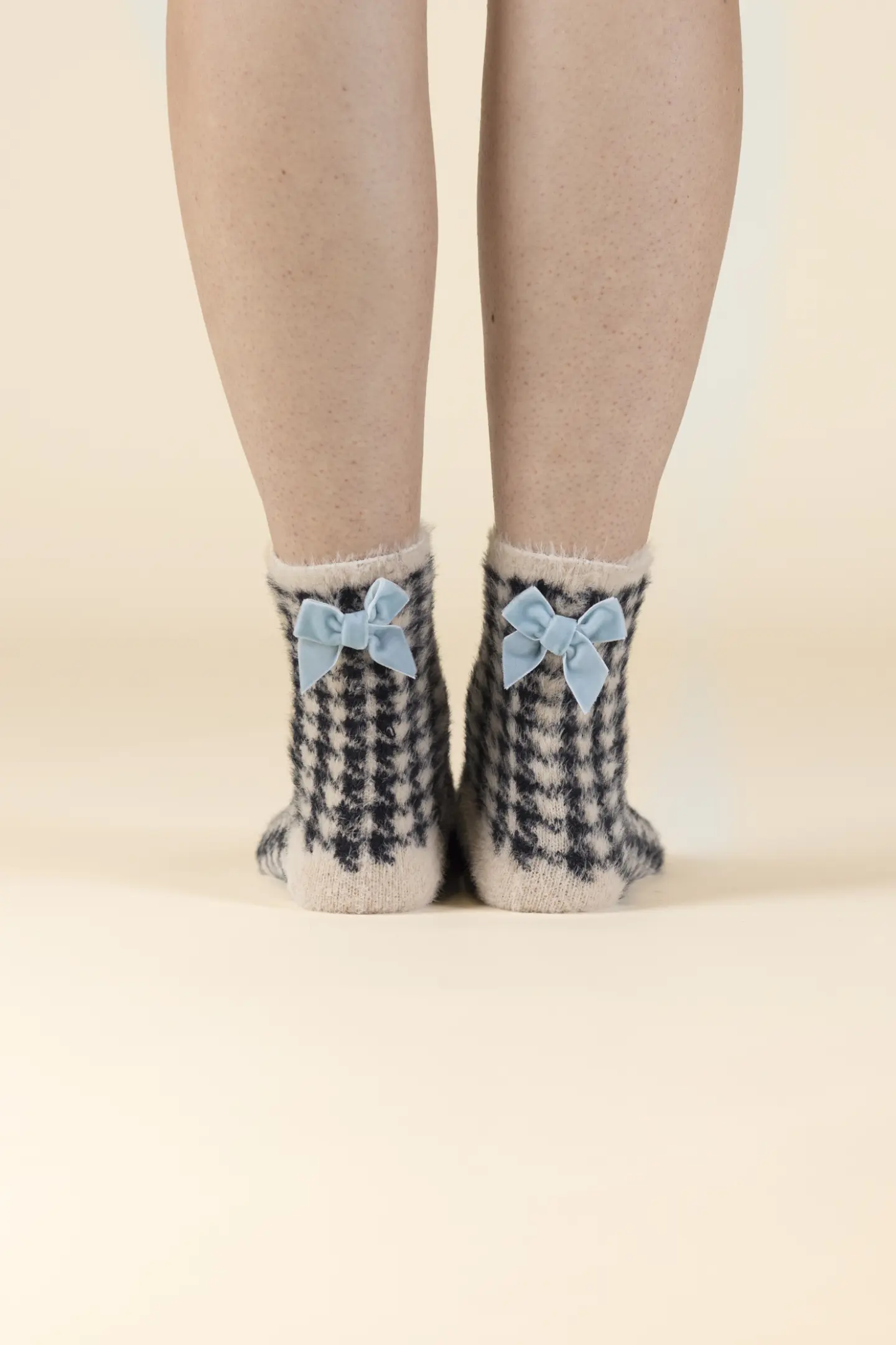 Γυναικείες κάλτσες σπιτιού Noidinotte καρό . Ζεστές κάλτσες Fleece με διακοσμητικό φιόγκο στο πάνω μέρος. Διαθέτουν αντιολισθικό πάτο.