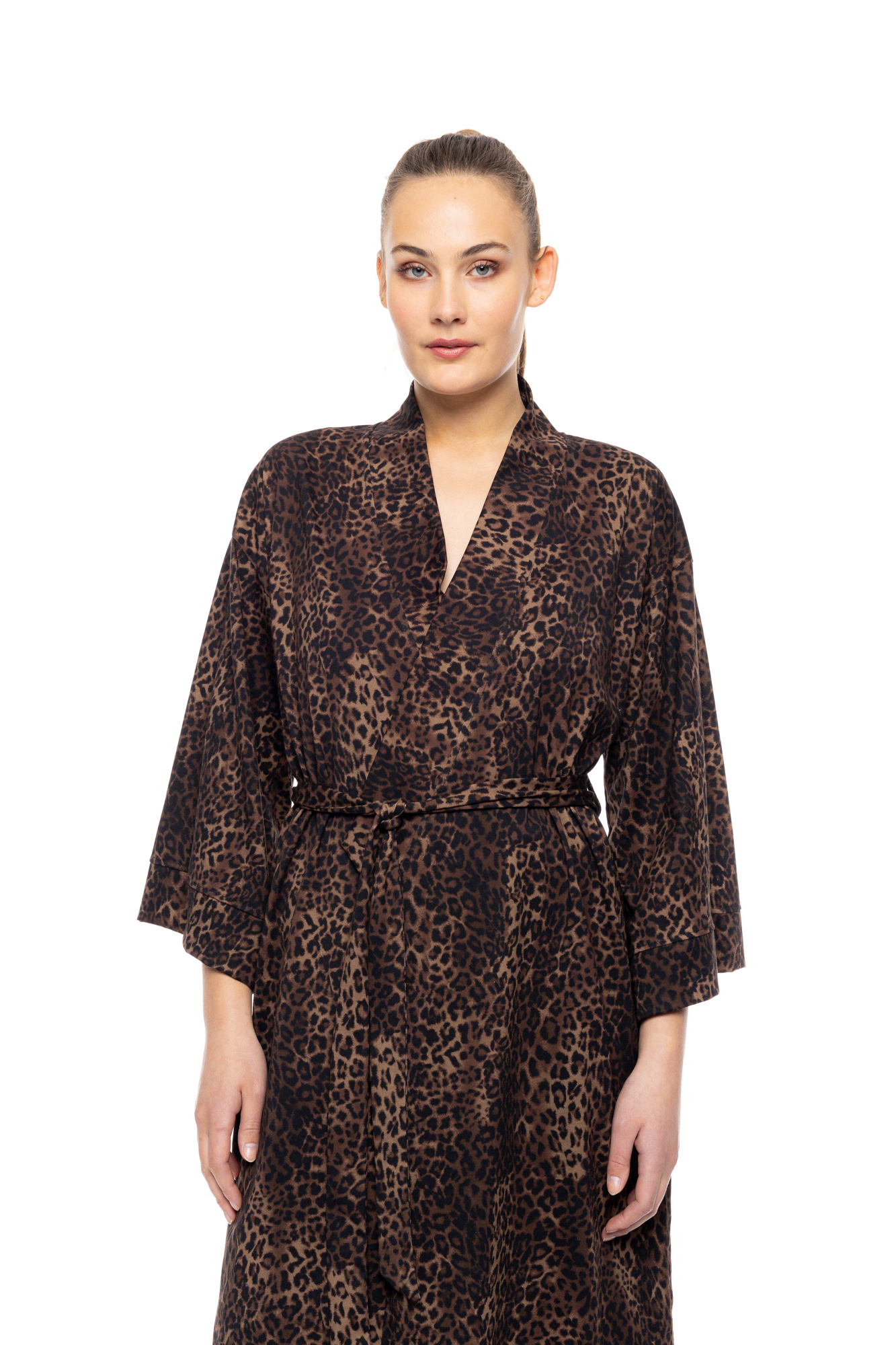 Γυναικείο midi κιμονό Pink Label. Μακρυμάνικο κιμονό animal print σε γήινους τόνους, με φαρδιά μανίκια και ζώνη στην μέση.