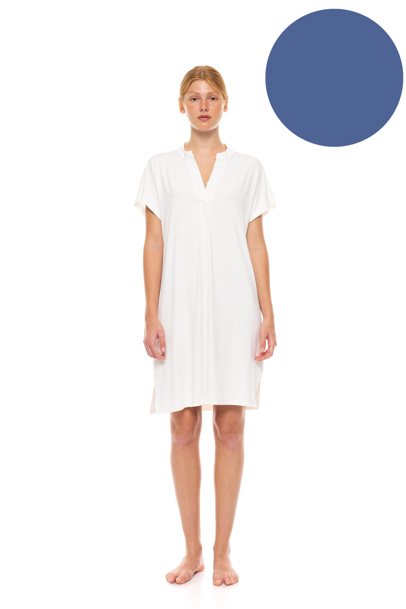 Γυναικείο καλοκαιρινό νυχτικό Pink Label. Κομψό νυχτικό μίνι Cosmos Blue σε άνετη γραμμή με V λαιμόκοψη και μάο γιακά. Το απόλυτο δροσερό και απορροφητικό Bamboo ύφασμα το καθιστά ιδανικό για όλο το καλοκαίρι.