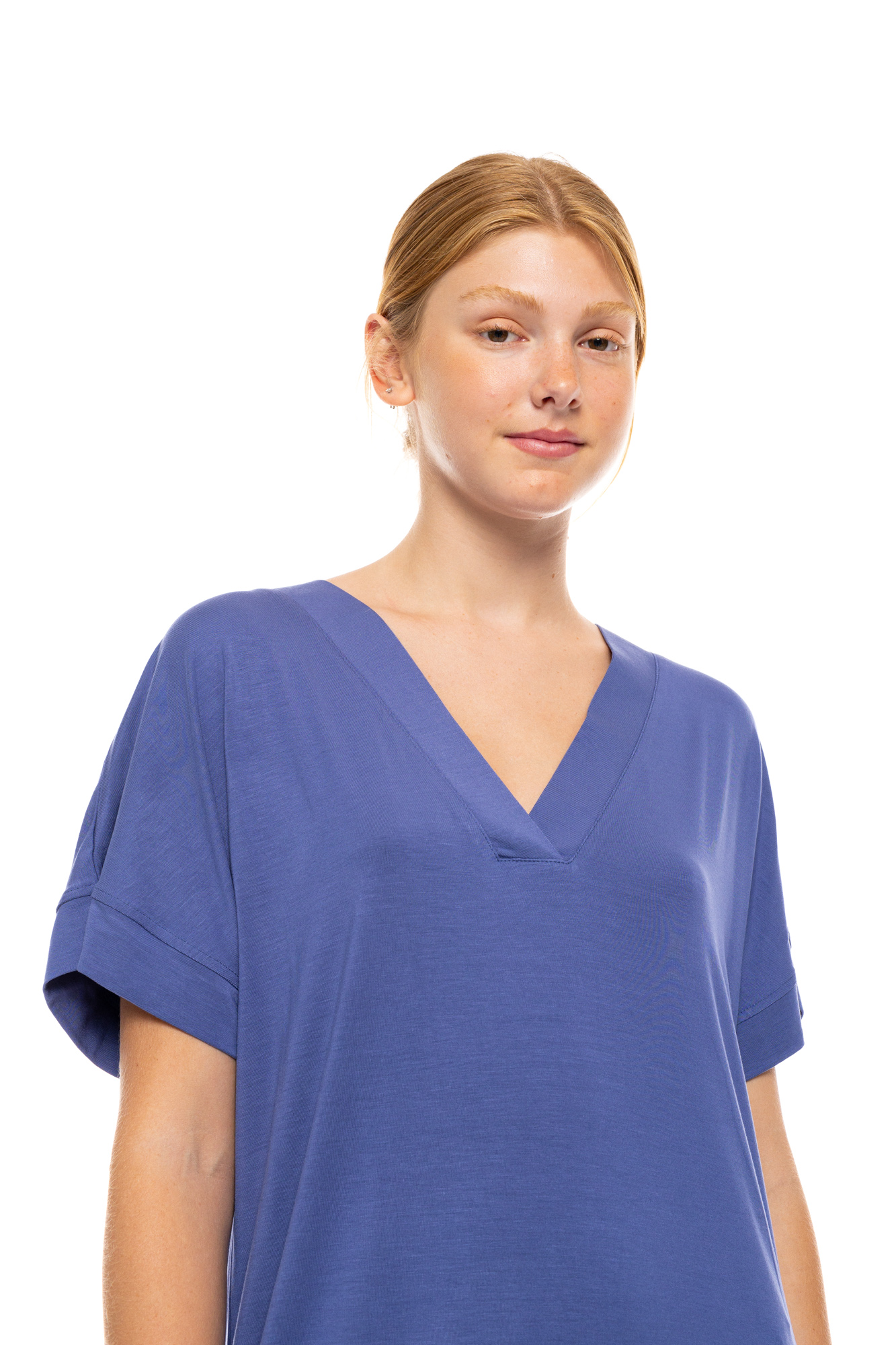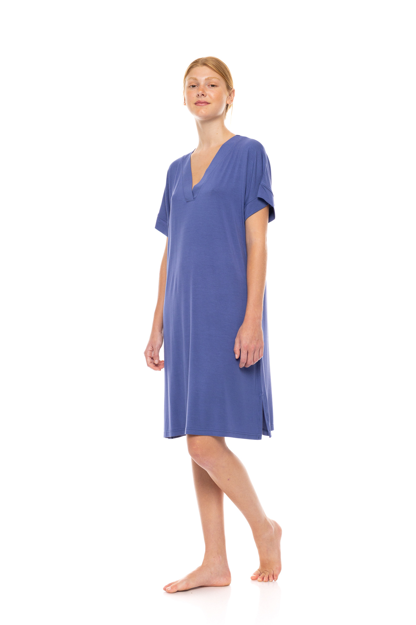 Γυναικείο καλοκαιρινό νυχτικό Pink Label. Κομψό νυχτικό μίνι Cosmos Blue σε άνετη γραμμή με V λαιμόκοψη. Το απόλυτο δροσερό και απορροφητικό Bamboo ύφασμα το καθιστά ιδανικό για όλο το καλοκαίρι.