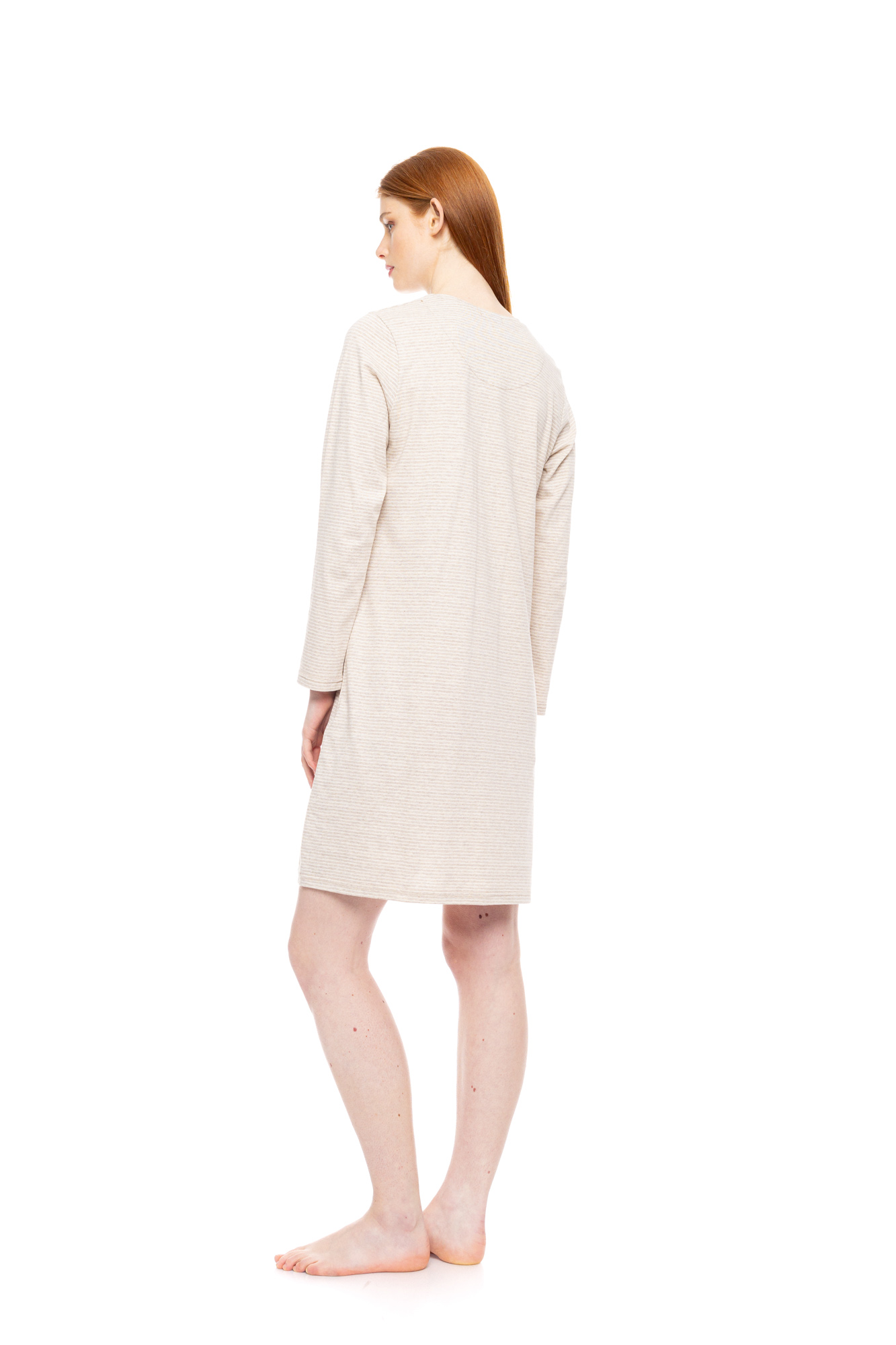 Γυναικείο mini νυχτικό Pink Label. Μακρυμάνικο νυχτικό HAZELNUT STRIPES, σε άνετη γραμμή με στρογγυλή λαιμόκοψη, πατιλέτα και λευκή δαντέλα στο τελείωμα.