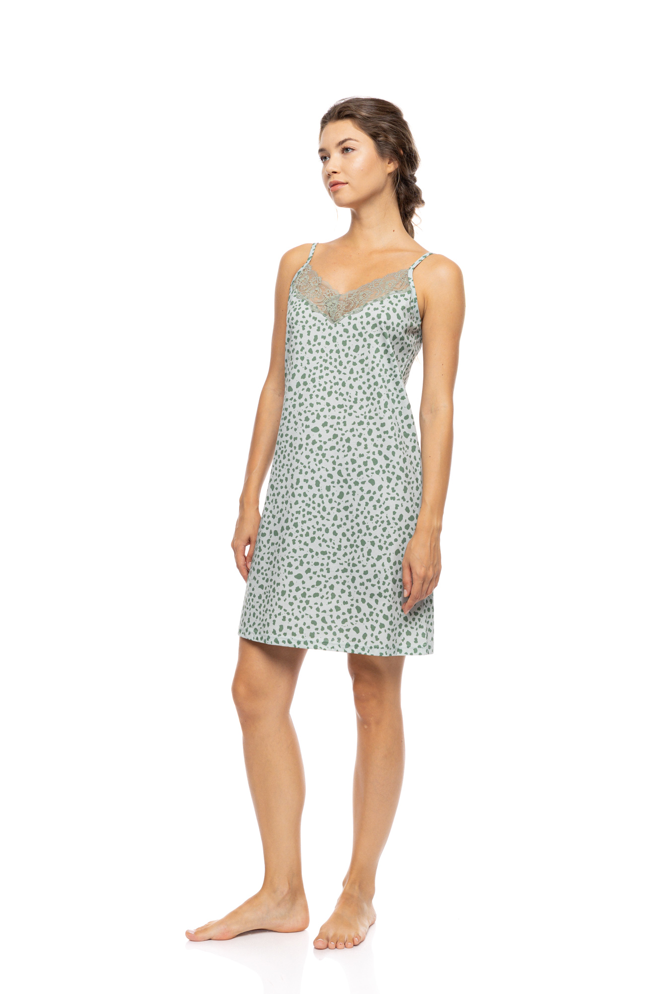 Γυναικείο Νυχτικό - Pink Label - JADE LEO - Λεπτή Τιράντα - Δαντέλα - Cotton