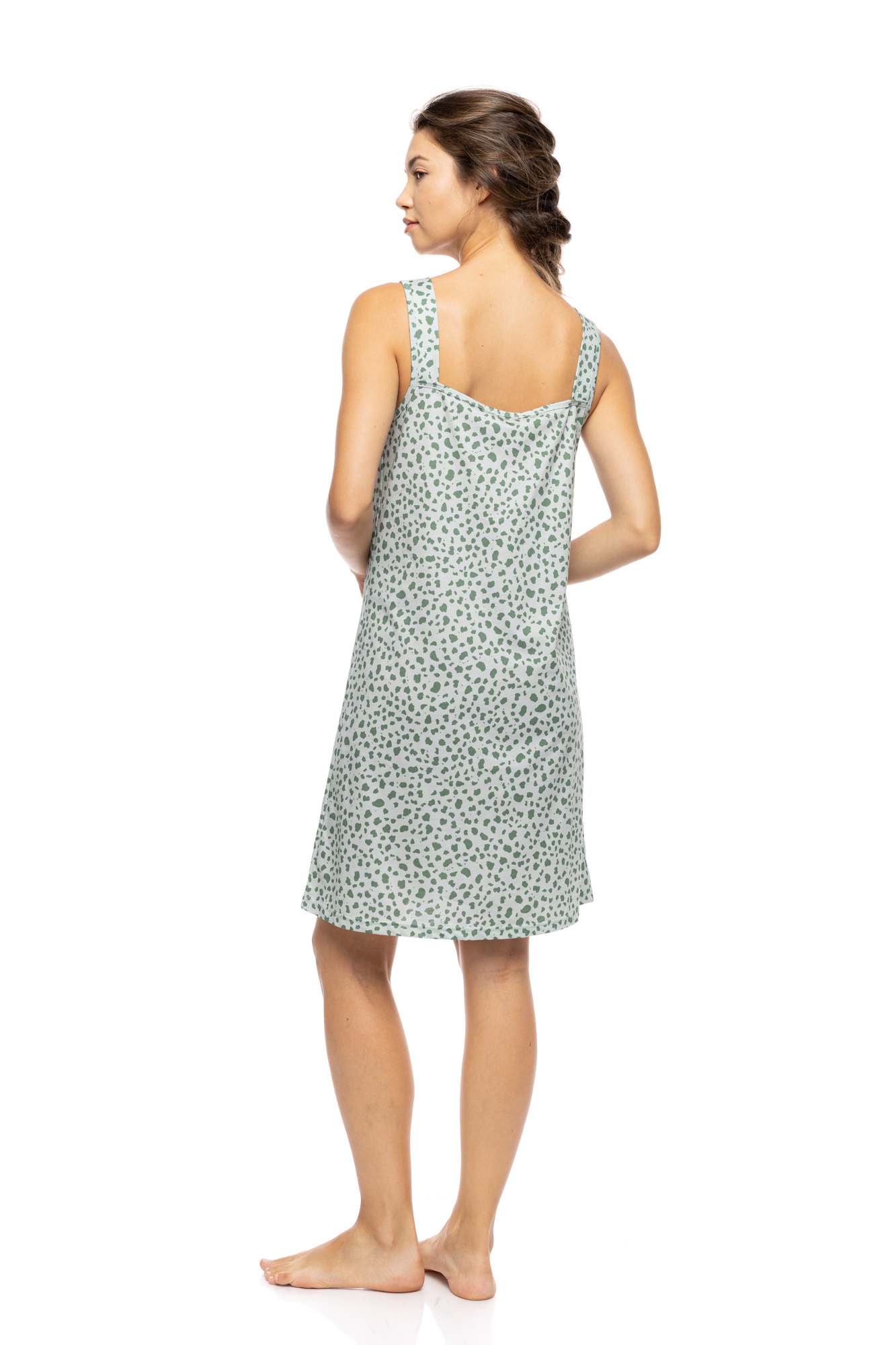Γυναικείο καλοκαιρινό νυχτικό Pink Label. Κομψό νυχτικό Με φαρδιές Τιραντες  - πατιλέτα σε ίσια γραμμή με  λαιμόκοψη. Το απόλυτο δροσερό βαμβακερό υφάσμα σε συνδυασμό με το γήινο χρώμα JADE LEO  το καθιστά ιδανίκο για όλο το καλοκαίρι.