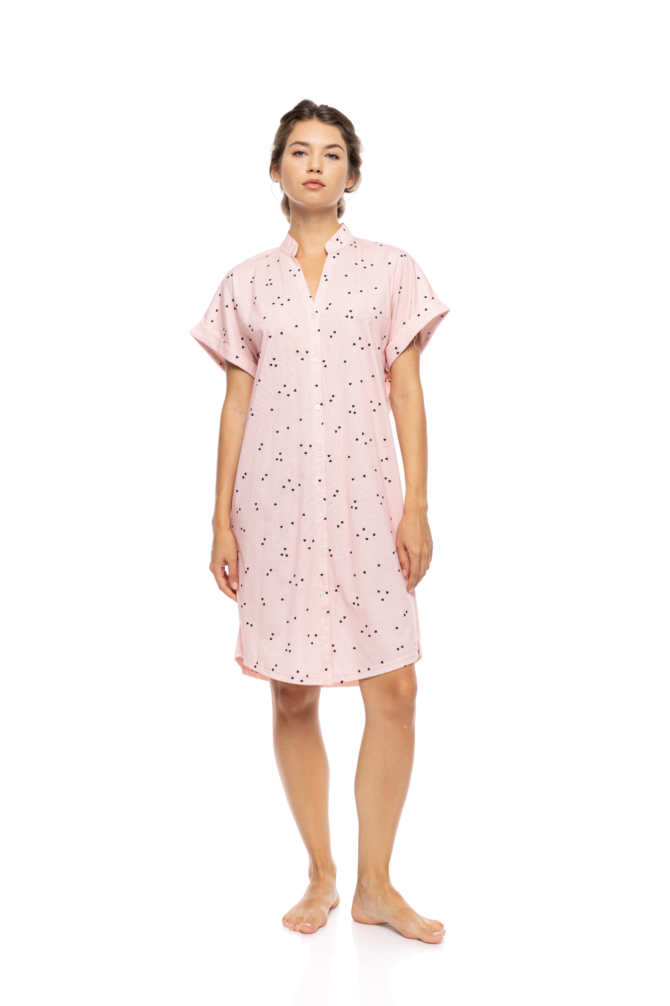 Γυναικείο Νυχτικό - Pink Label - LITTLE HEART PINK - Κοντομάνικο - Σεμιζιέ - Cotton