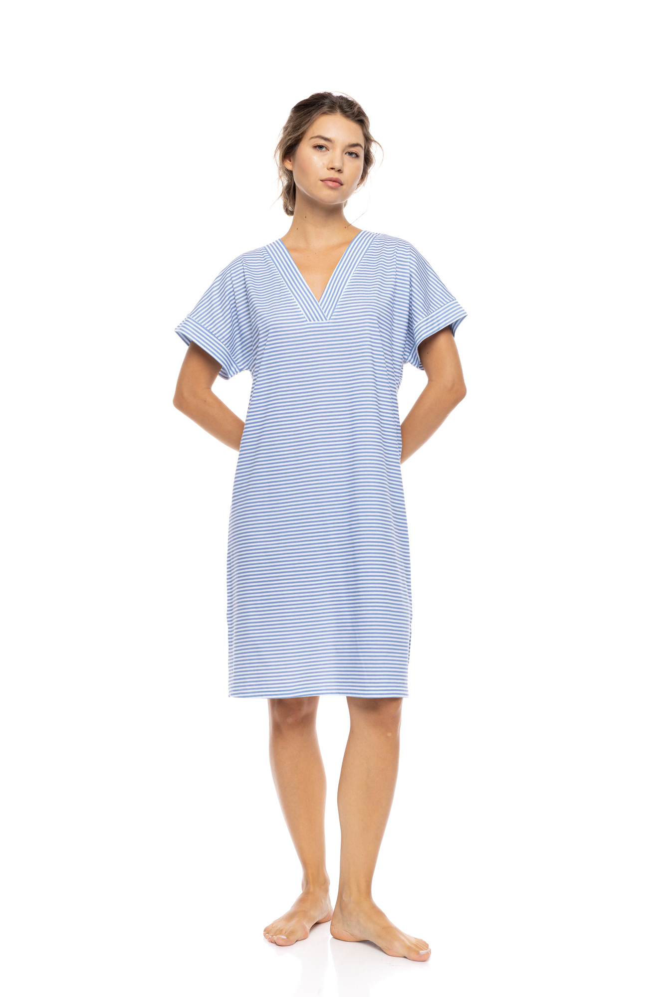 Γυναικείο Νυχτικό Pink Label - MARINIERE Print - Κοντομάνικο - Cotton